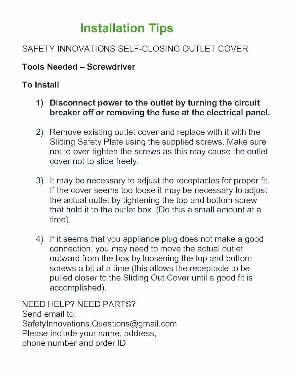 - PLEASE READ INSTALLATION TIPS LIST IN IMAGES - SAFE, RELIABLE BABY PROOFING PROTECTION: You’ll be relieved to know that when an electrical cord is unplugged our plate has covers that slide shut automatically. Unlike many other outlet covers, our outlet covers are not universal because one size does NOT fit all! We offer a cover for each outlet style…one for standard outlets (with a single center screw) and one for decora outlets (with a top and bottom screw). Order the style you need so they fit and operate best! Covers Measure 3" X 4 3/4"