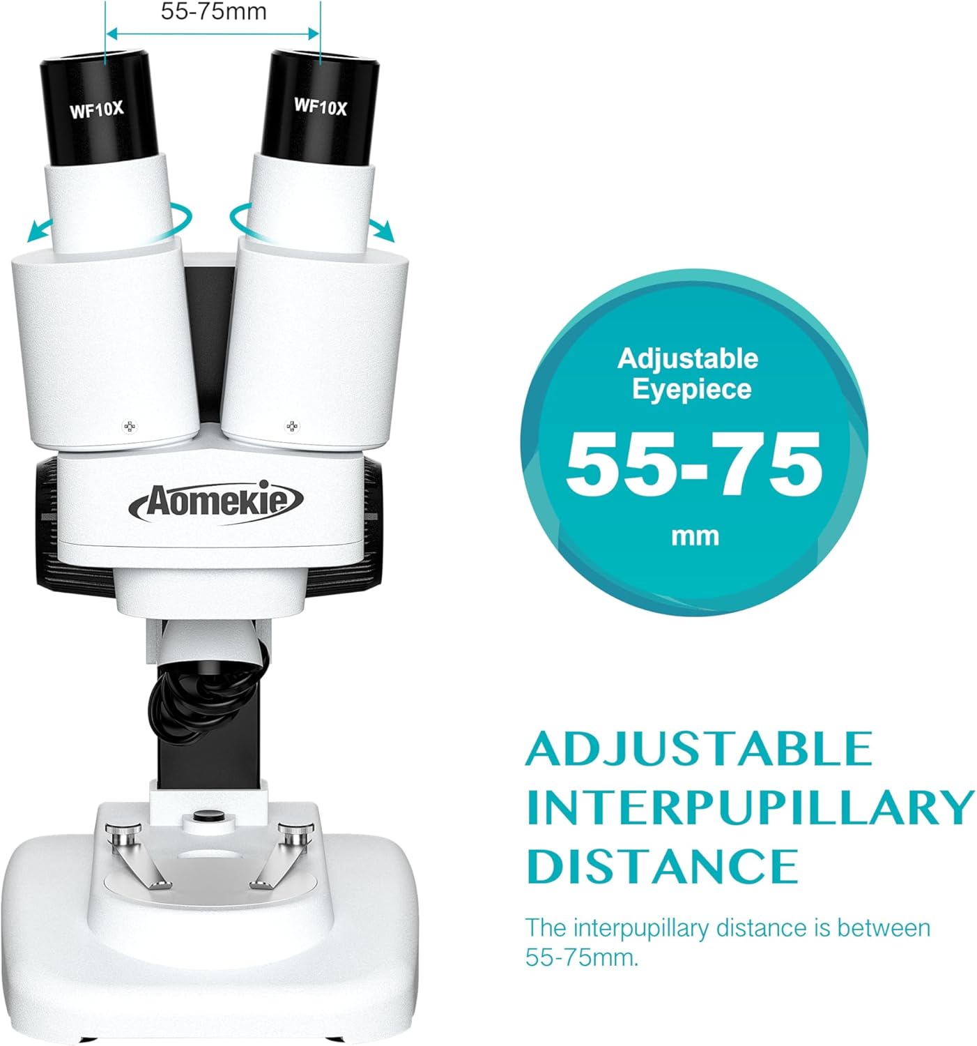- Adjustable Interpupillary distance (55mm -75mm) is designed for different users. Binocular viewing makes you use both eyes when inspecting. Binocular microscope is suitable for young users.