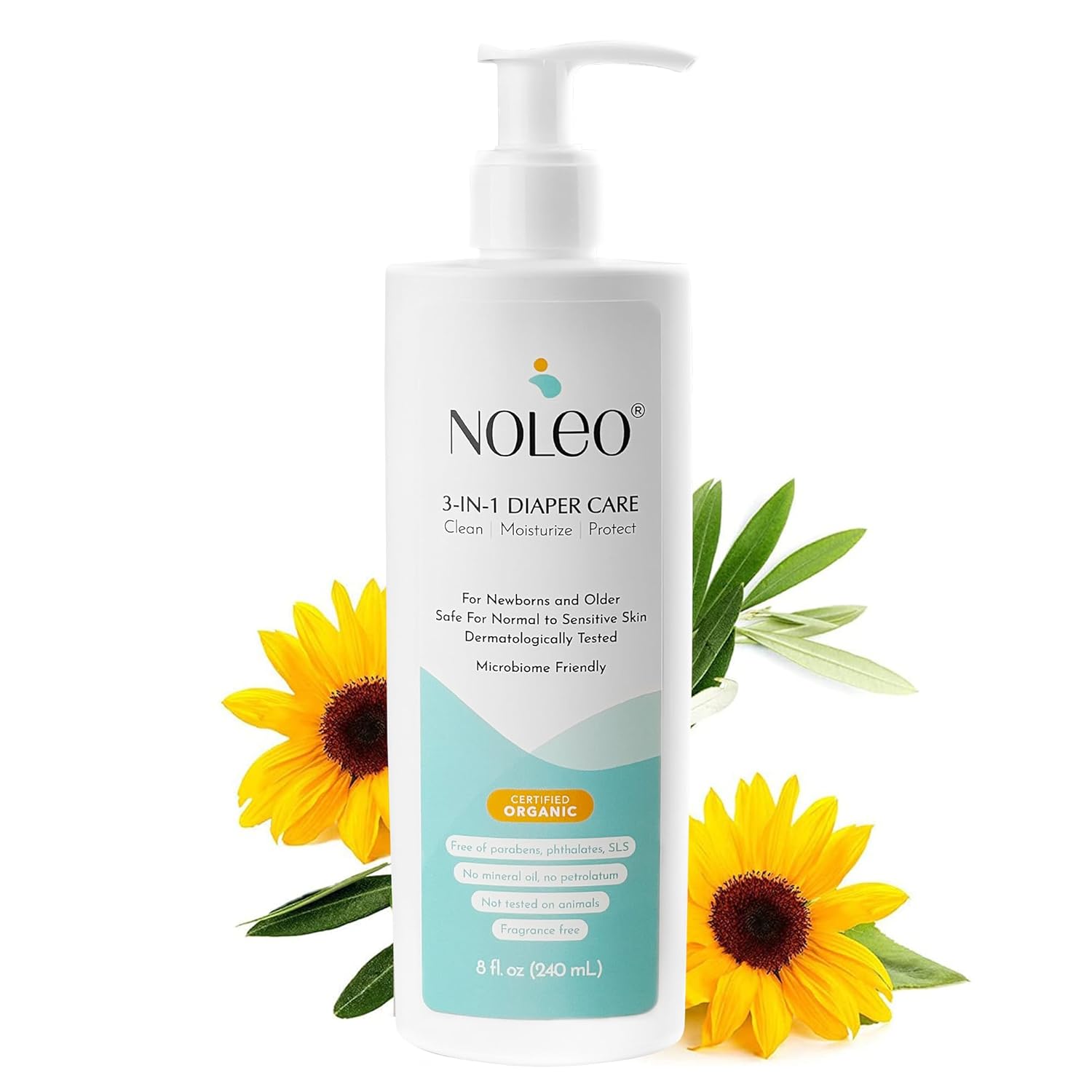 - Changing Baby Diapers Now Easy & Fuss-Free: Change baby diapers the NOLEO way and experience more fuss-free bonding times with your baby. With the traditional method requiring 3 steps-- clean your baby’s bottom with baby wipes, moisturize with baby lotion, then apply rash cream, now you can do all those at once using our 3-in-1 Organic Diaper Care. Replacing all 3 baby care products means less work, less worries, and more time to spend with your little one