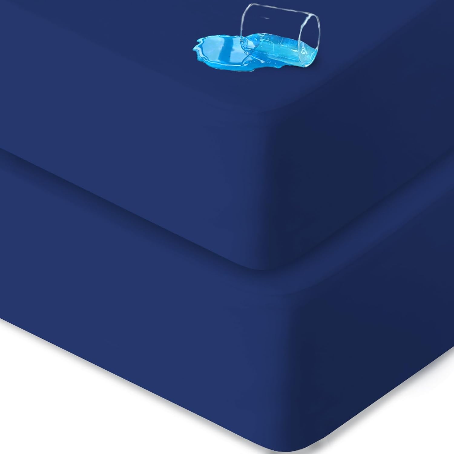 Biloban Pack and Play Sheets Fitted Waterproof 2 Pack, Compatible with Baby Graco Pack n Play/Playard and Other 38" X 26" Playpen Mattress, Navy