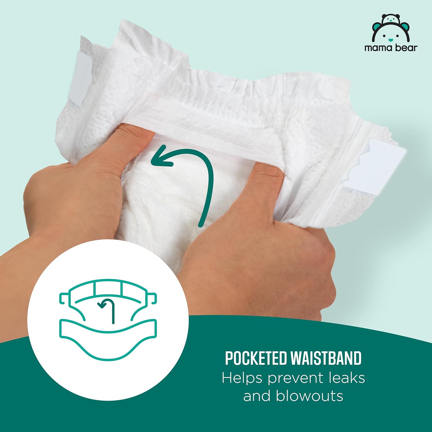 - POCKETED WAISTBAND: Helps prevent leaks and blowouts