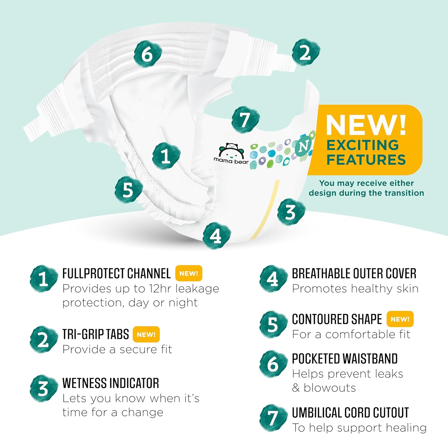 - COMFORTABLE FIT: Curved shape, stretchy waist, and TRI-GRIP tabs wraps baby in 360° of security