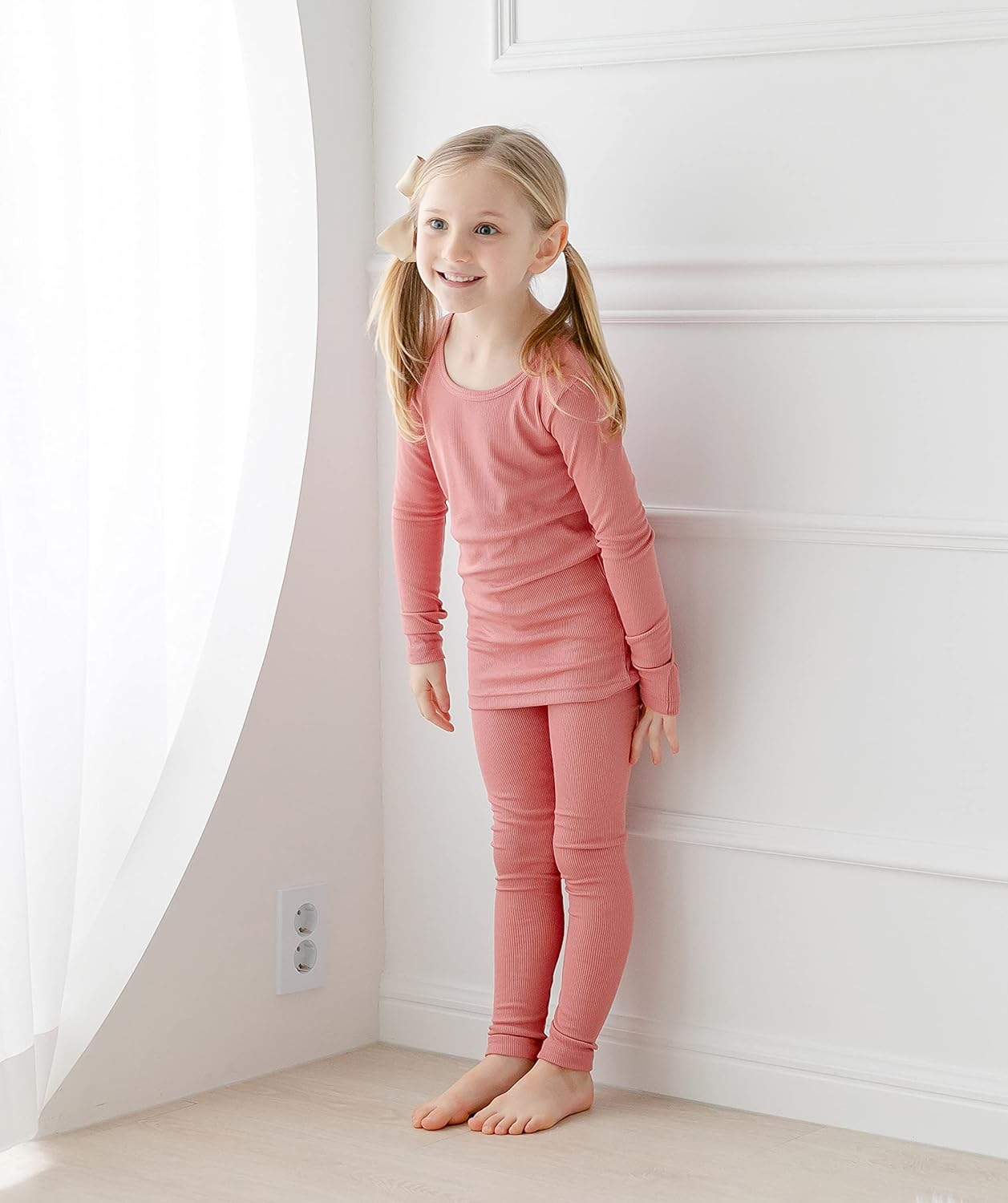 • COMFORTABLE FABRIC - This stylish pj set is a perfect blend of multi-functional style and comfort ribbed knit. Viscose rayon is like a smooth material similar to silk breathable, similar to cotton in this regard. Enough to help protect child's delicate skin. That's why pajama set is Easy to dye, light weight, and natural material. It will give perfect fit.