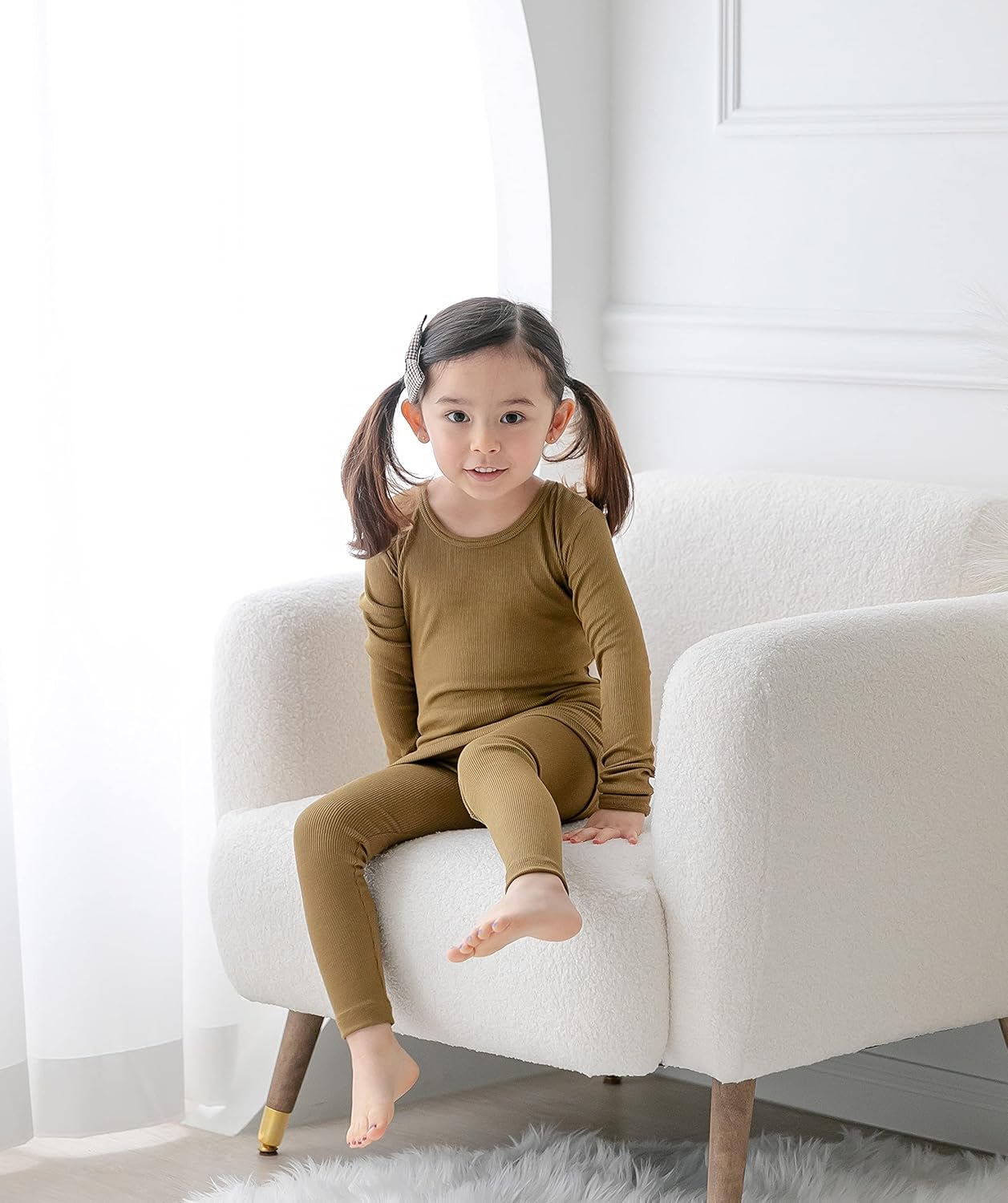 • COMFORTABLE FABRIC - This stylish pj set is a perfect blend of multi-functional style and comfort ribbed knit. Viscose rayon is like a smooth material similar to silk breathable, similar to cotton in this regard. Enough to help protect child's delicate skin. That's why pajama set is Easy to dye, light weight, and natural material. It will give perfect fit.