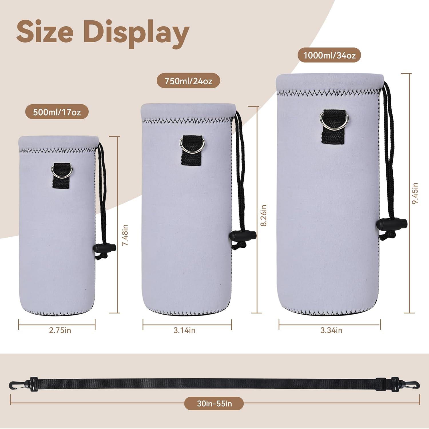 • Dimension : length: 7.87 inches,Diameter: 2.75 inches the neoprene stretches to fit most 500-550ML bottles