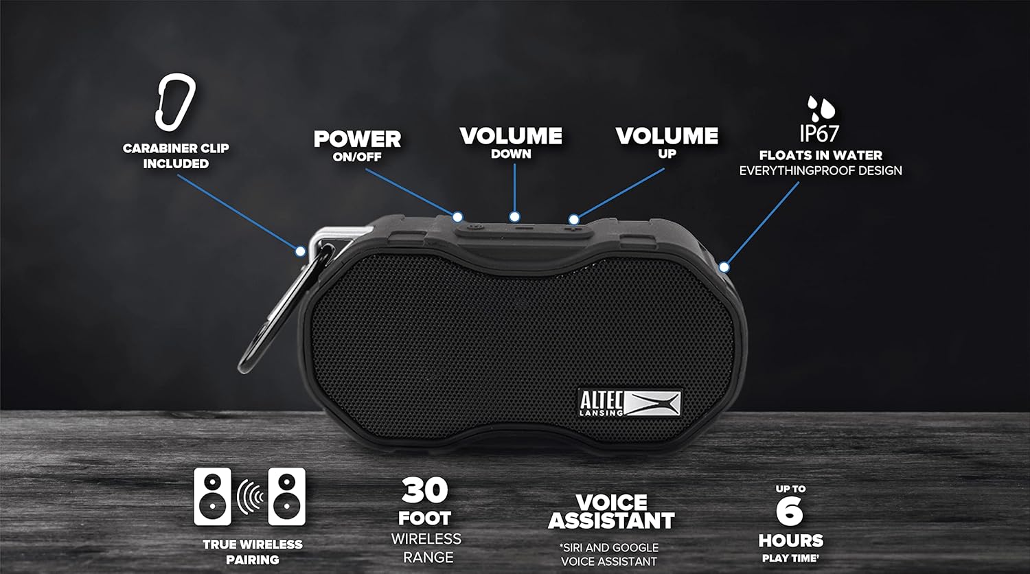 Altec Lansing Baby Boom XL - Waterproof Bluetooth Speaker, Wireless & Portable for Travel & Outdoor Use, Deep Bass & Loud Sound, 1 Pack, Black