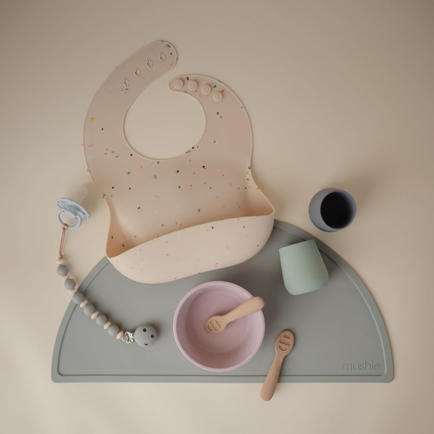 mushie Silicone Baby Bib | Adjustable Fit Waterproof Bibs (Vanilla Confetti)