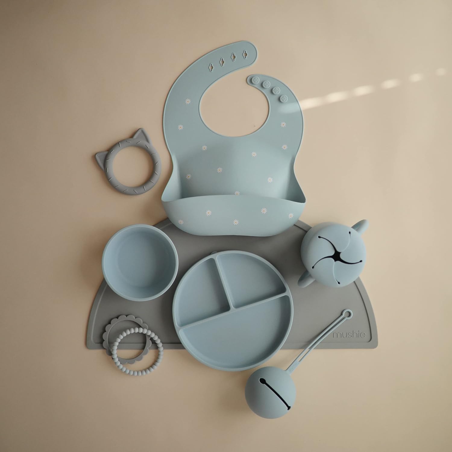 - Keep your little one feeling comfy and clean with our fun-loving collection of silicone bibs. Designed in Sweden, mushie bibs feature classic patterns capturing a look that's both timeless and elegant. Our timeless colors and patterns pair well with mushie silicone placemats, splat mats and tableware.