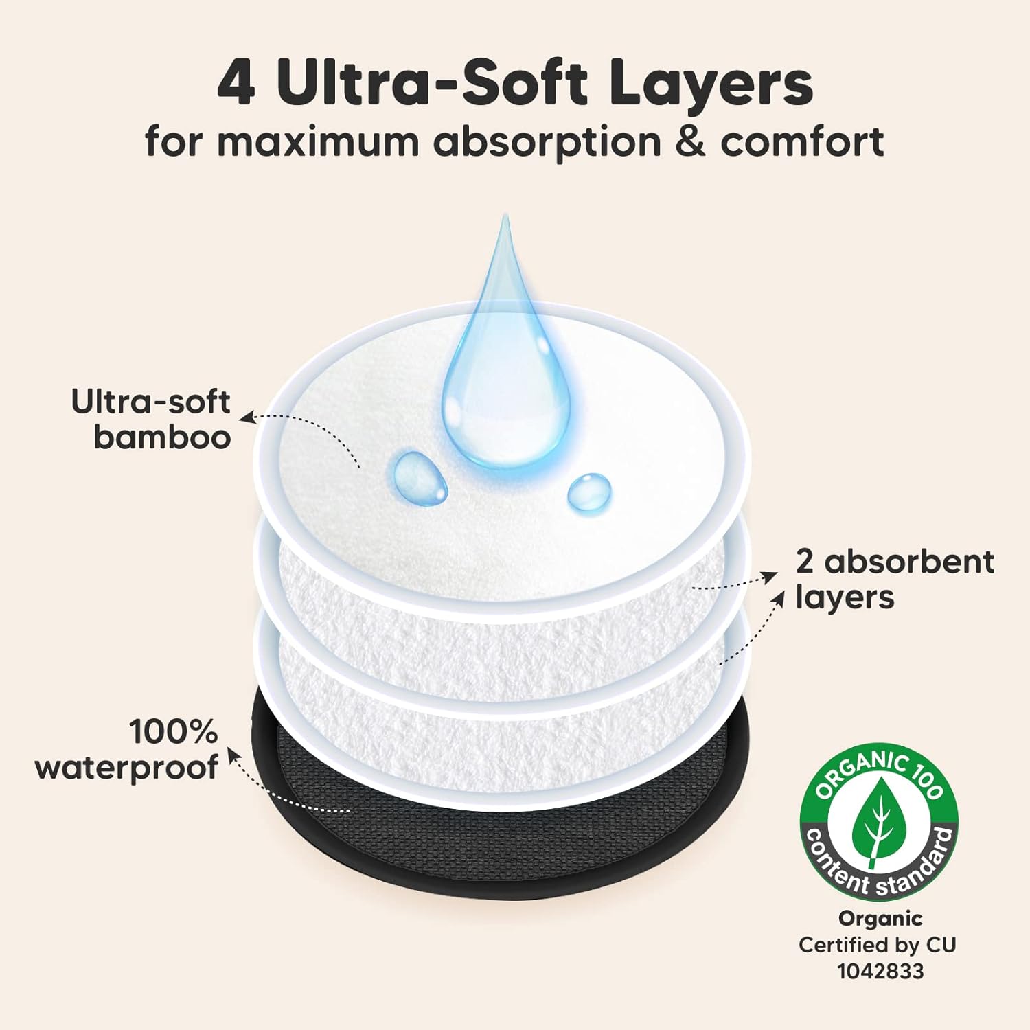 - Great For Leakages – Leakage is a thing of the past with our 4-layer nursing pads. KeaBabies Nursing Pads feature three layers of ultra-absorbent viscose derived from bamboo, sealed with a protective waterproof outer layer for extra security on the nipple pads. Tip: If you experience a heavy flow, please replace breast pads every 5-6 hours.