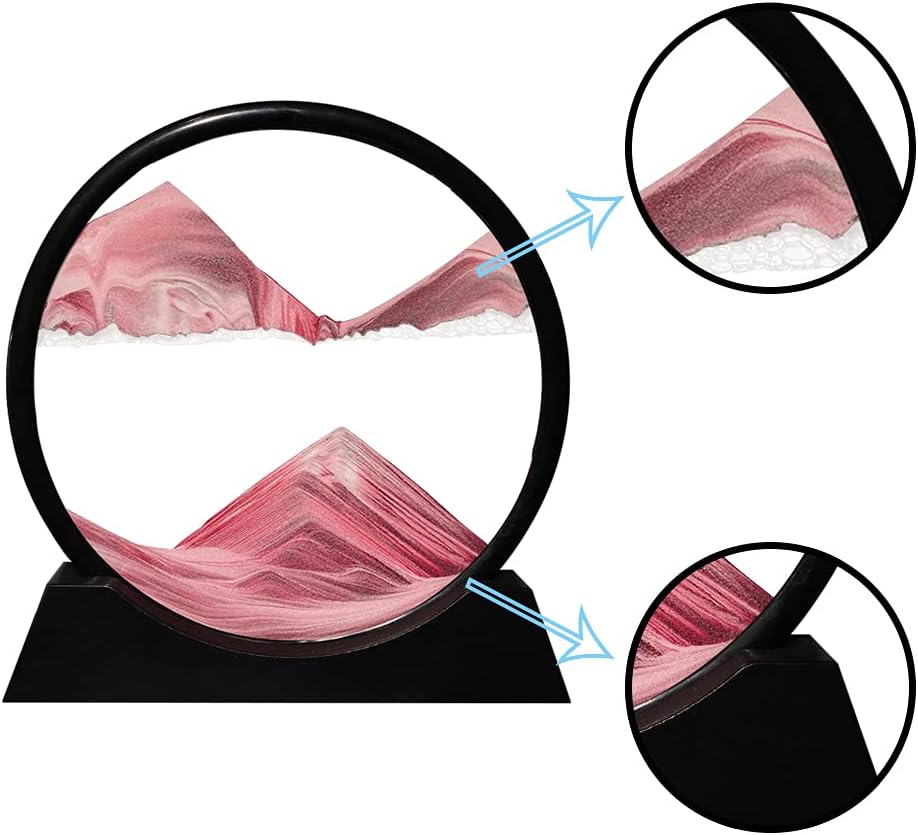 Aoderun Moving Sand Art Picture Round Glass 3D Deep Sea Sandscape in Motion Display Flowing Sand Frame Relaxing Desktop Home Office Work Decor (12", Pink)