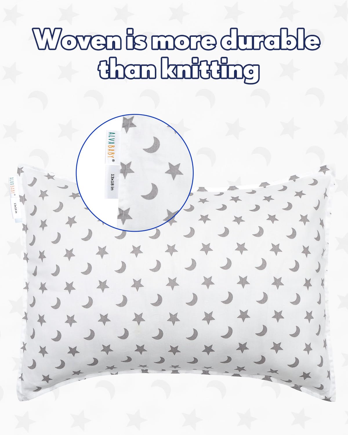 ALVABABY Toddler Pillowcases 2 Pack Organic Cotton Kids Pillow Cover Fit 13"x 18" or 12"x23" Envelope for Girl Boy Sleepy Travel