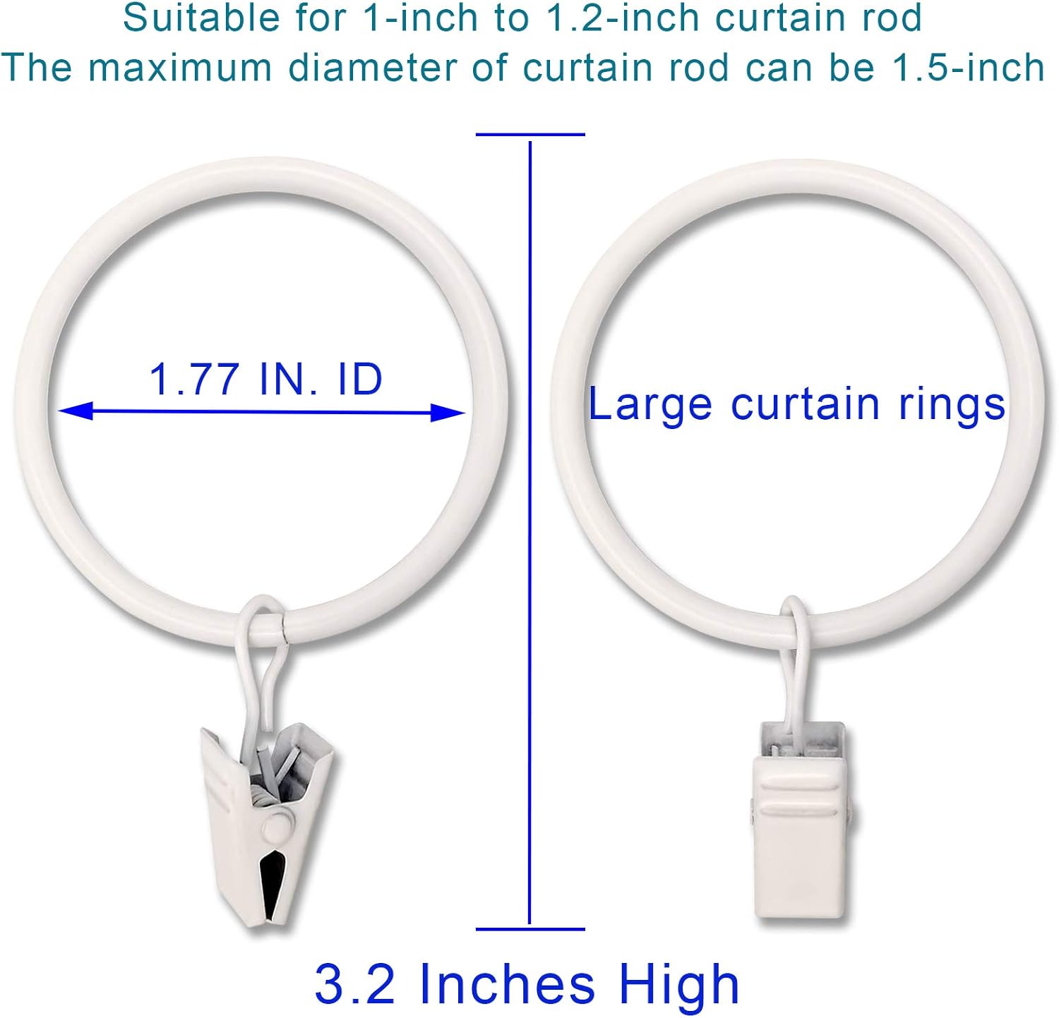 - 【Please Note】This rings fits 1.5 in or smaller diameter drapery rod, The clip is a little tight when it is opened for the first time, and it will be easy to open it when it is used again.