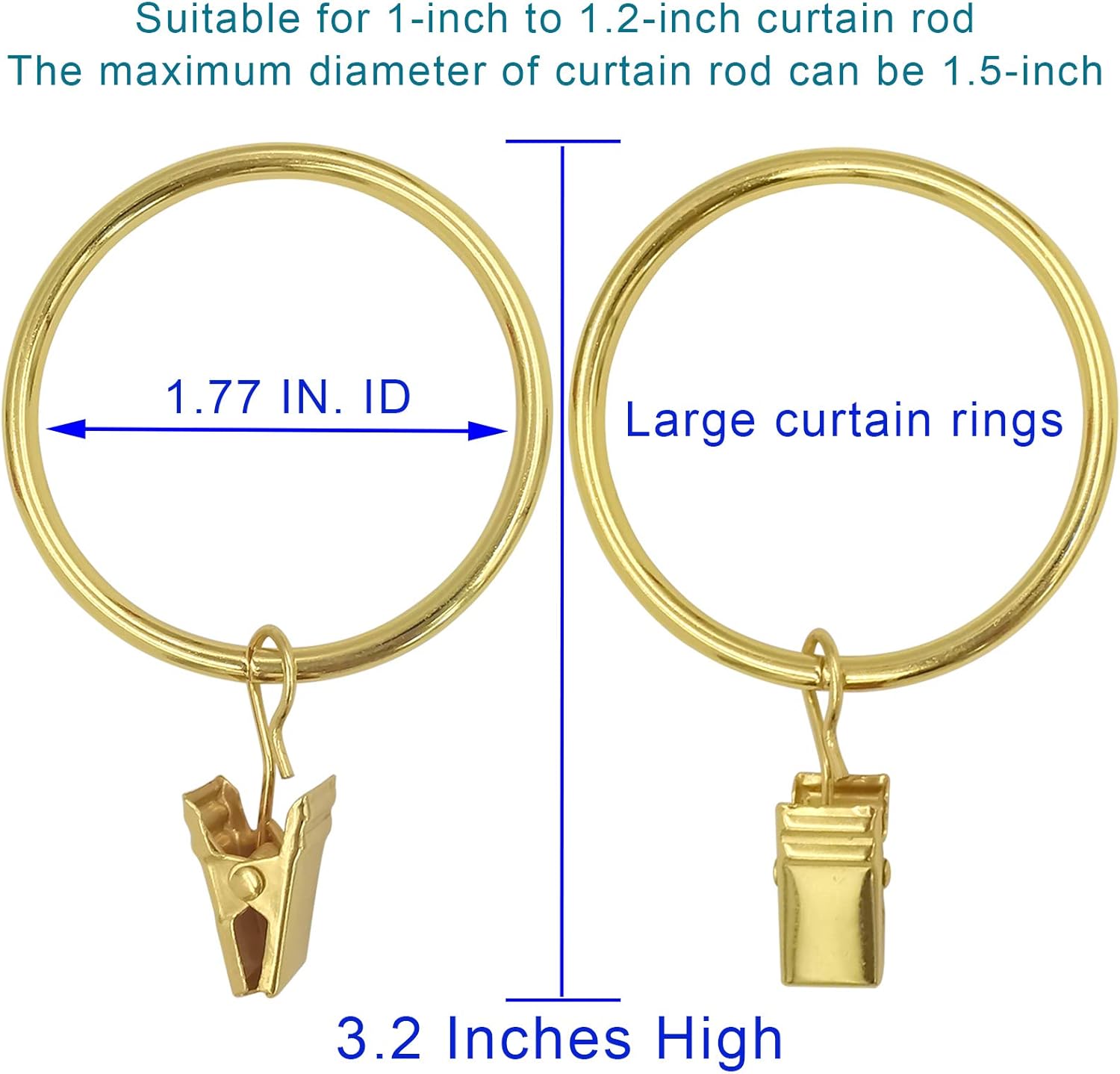 - 【Please Note】This rings fits 1.5 in or smaller diameter drapery rod, The clip is a little tight when it is opened for the first time, and it will be easy to open it when it is used again.