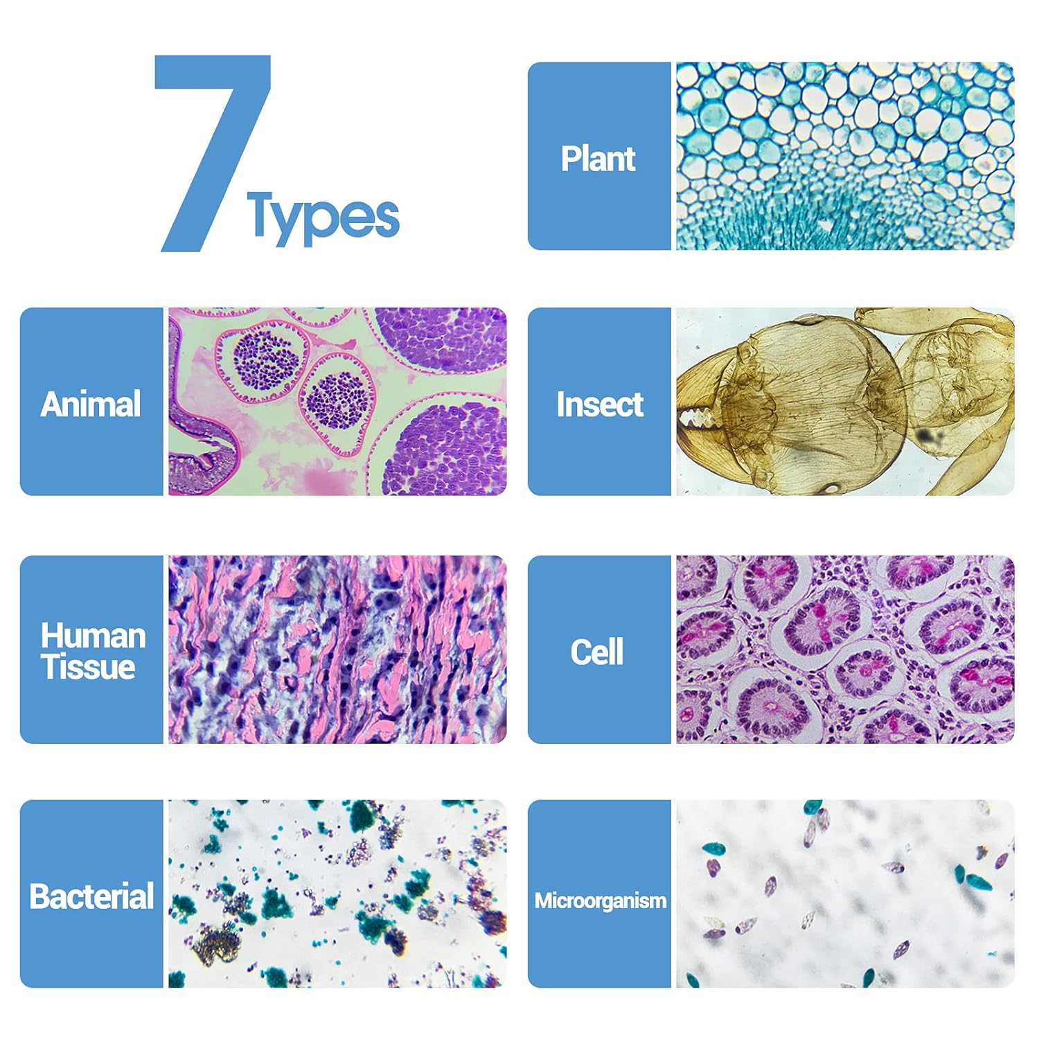 120 Microscope Slides with Specimens for Kids, Prepared Microscope Slides for Kids Microbiology, Prepared Microscope Slides for Adults