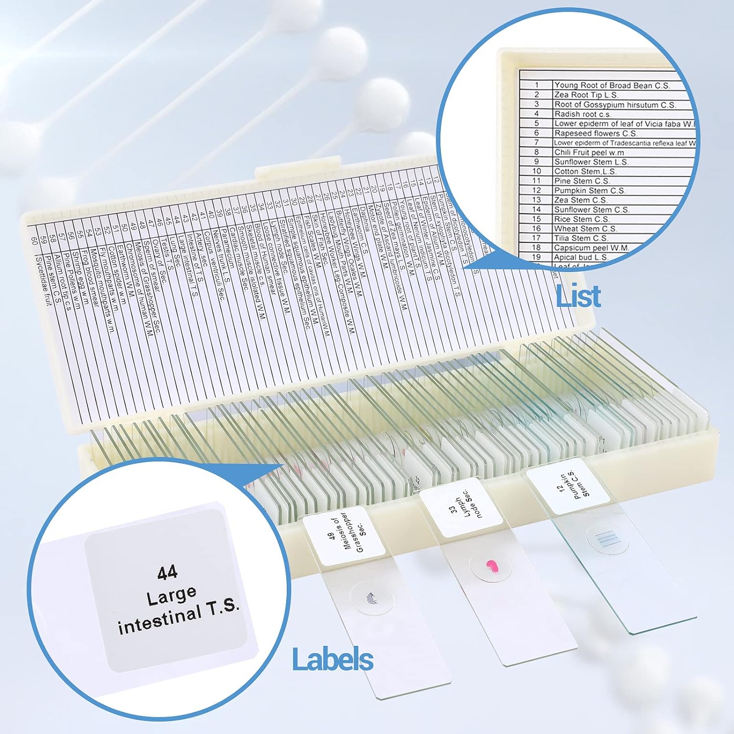 60 Microscope Slides with Specimens for Kids, Prepared Microscope Slides for Kids Microbiology, Prepared Microscope Slides for Adults