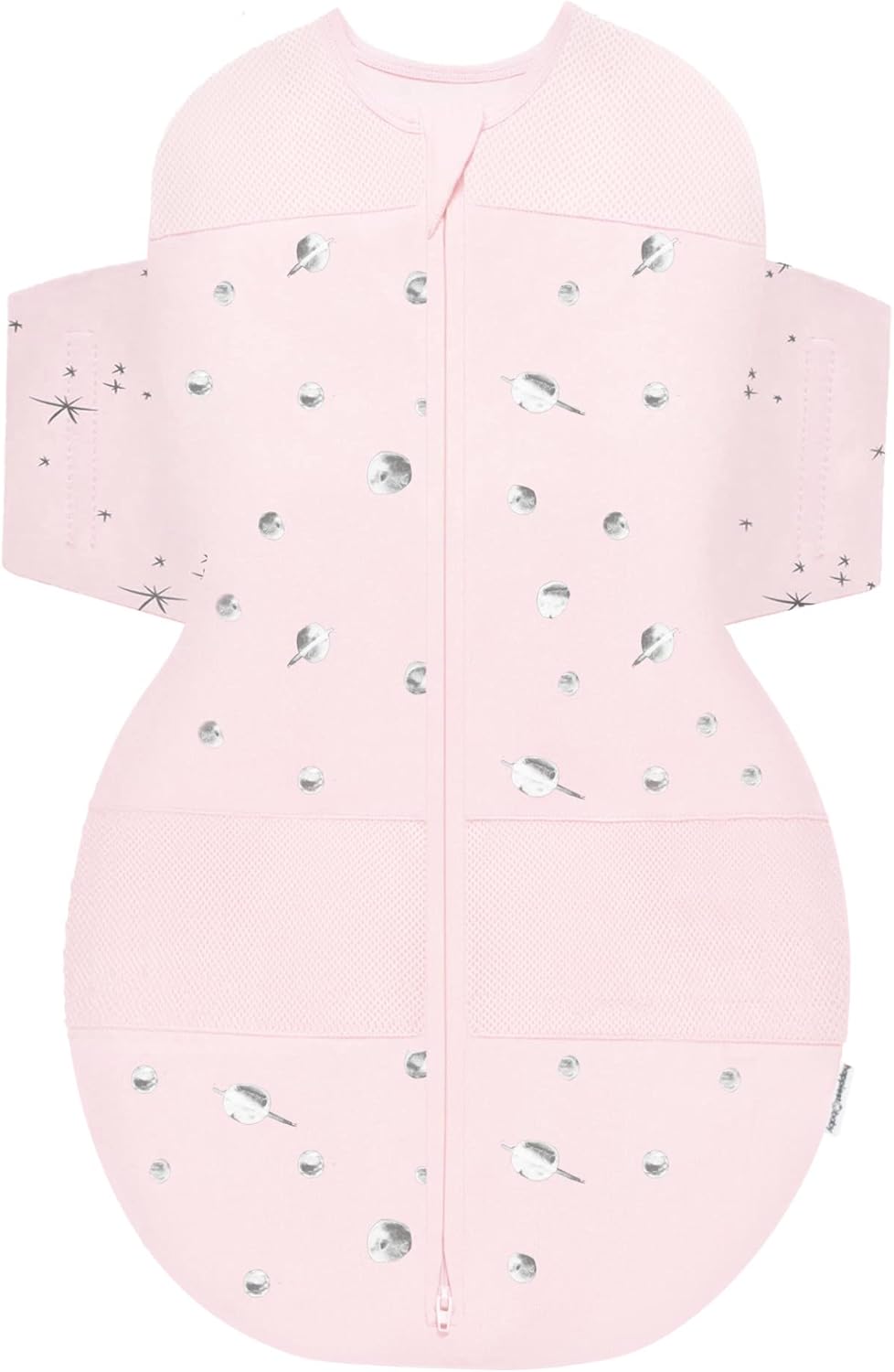Happiest Baby SNOO Sleep Sack - 100% Organic Cotton Baby Swaddle Blanket - Doctor Designed Promotes Healthy Hip Development (Rose Planets, Small)