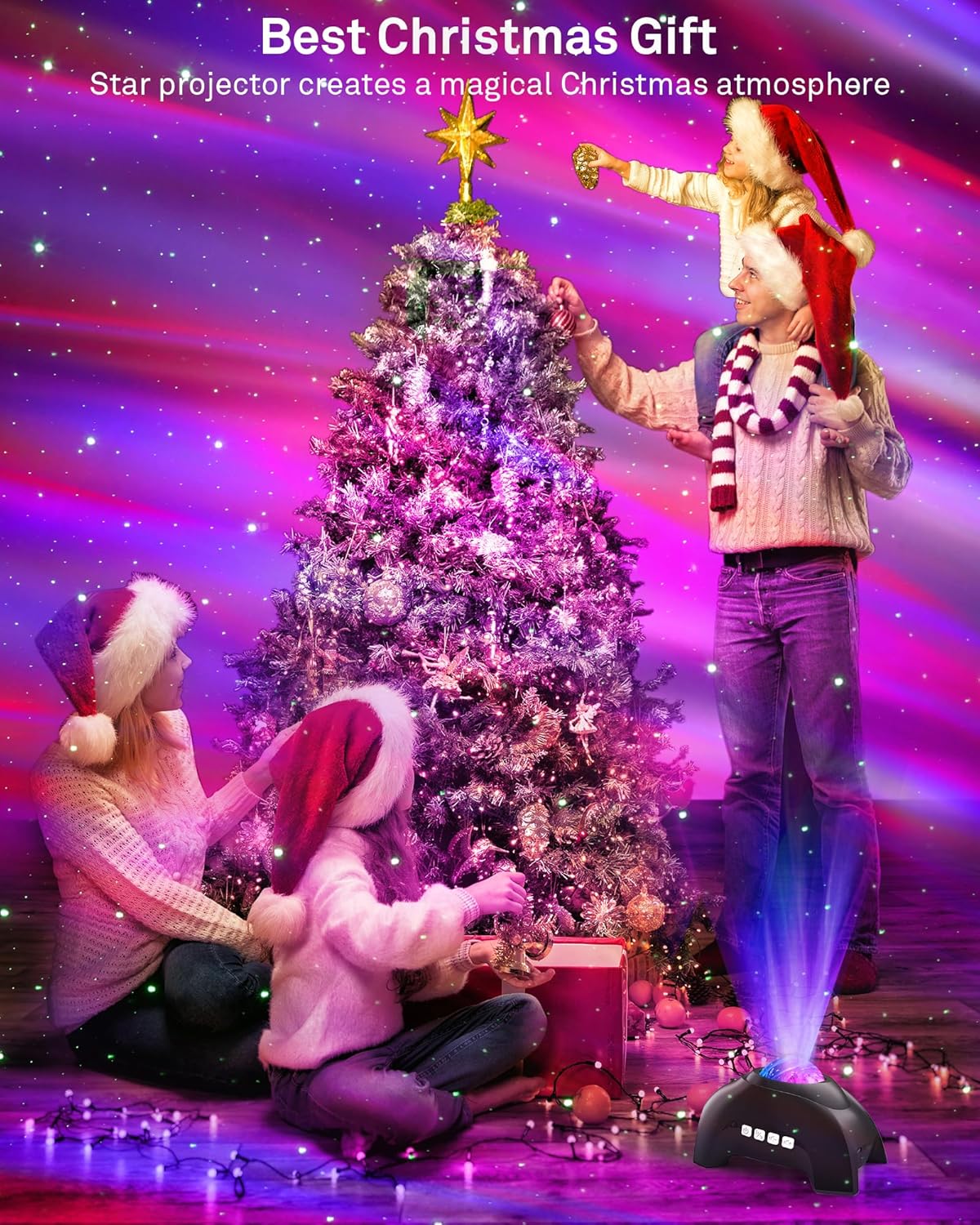 - 3 in 1 Aurora Light Projector - You can have both northern lights and stars working in unison or independently according to your preference. With the 4 basic aurora colors (Red, Green,Black, White), they can display by separation or combination, they can be static or moving, fast or slow, creating a miraculous ambience to your room
