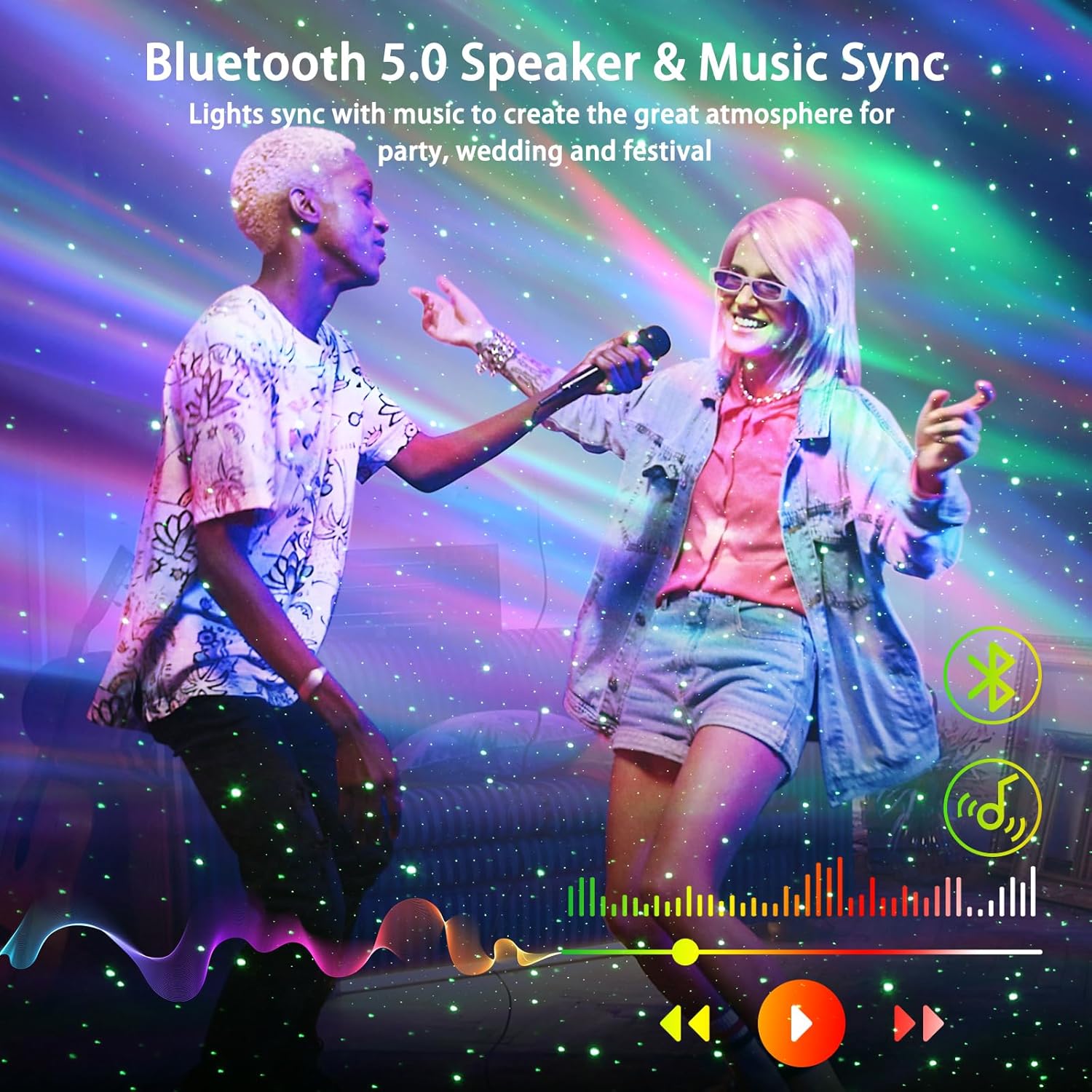 - Bluetooth Speaker & Sound activated - With the speaker built-in, our star projector can connect your devices via Bluetooth to play music and it also allow the lights projection sync with the music beat, creating a disco effect which is perfect for the party . Perfect for relaxing, and for party, bedtime story, to create all the atmosphere you need