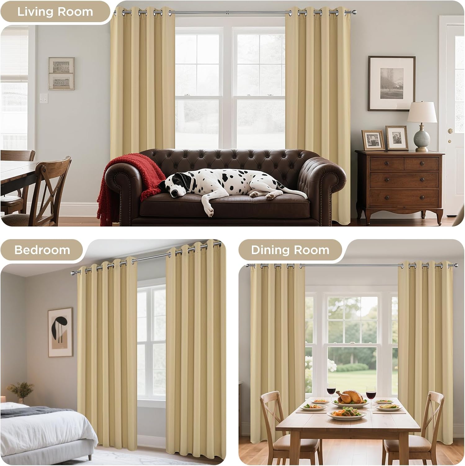 Joydeco Blackout Curtains 72 Inch Length 2 Panels Set, Thermal Insulated Long Curtains& Drapes 2 Burg, Room Darkening Grommet Drapes for Living Room Bedroom Window (W52 x L72 Inch, Beige)