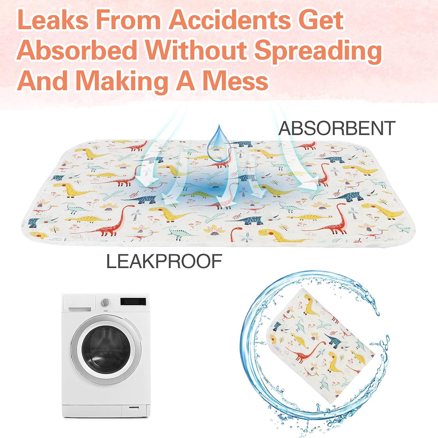 Baby Diaper Changing Pad, 21 5/8" x 31.5" Waterproof Changing Pad Liners 2Pack - Reusable Soft and Absorbent Portable Changing Mat(Dinosaur2PCS)