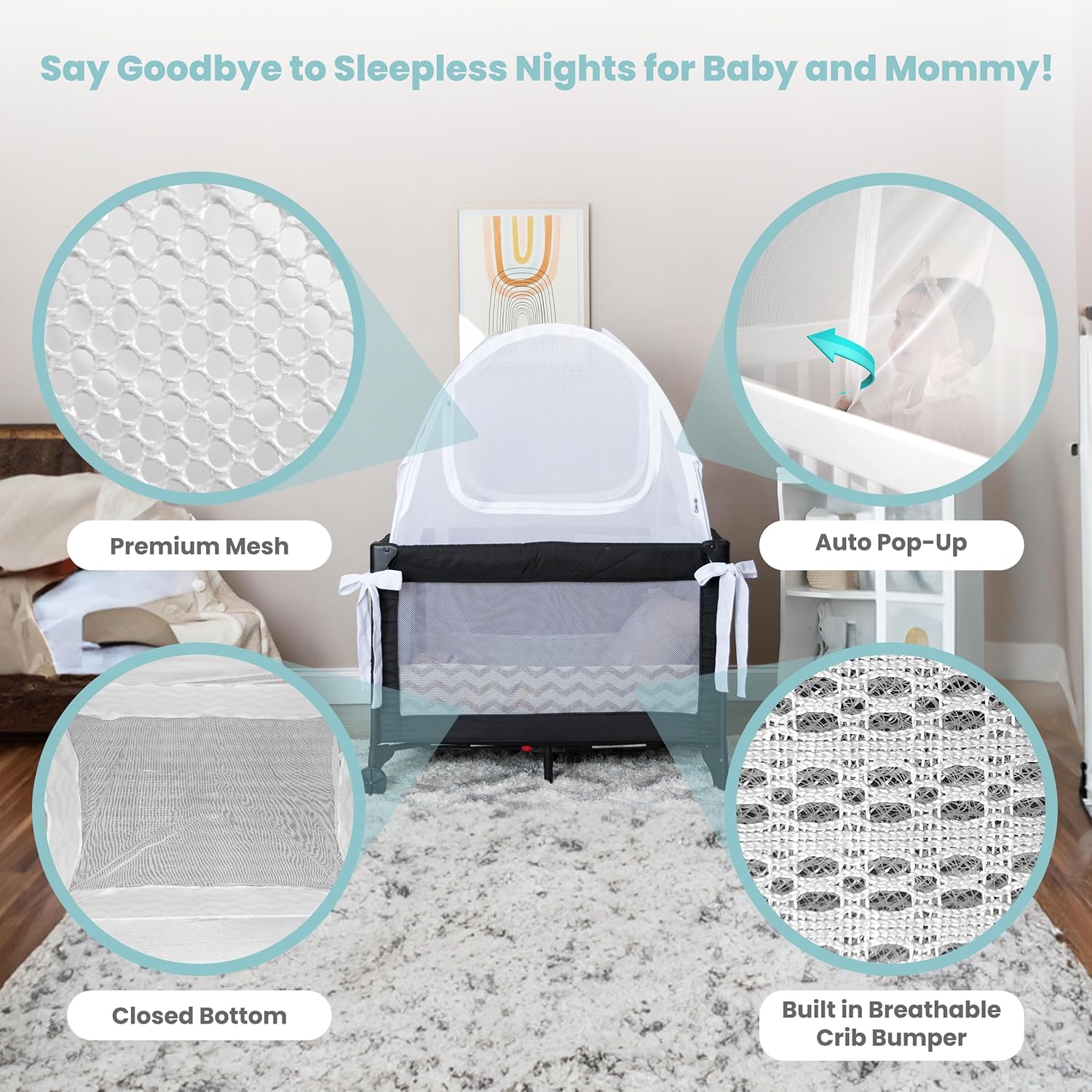 - Prevents Climbing and Falls – Provides essential safety by preventing your baby from climbing out. Also functions as a mosquito net for peaceful sleep.
