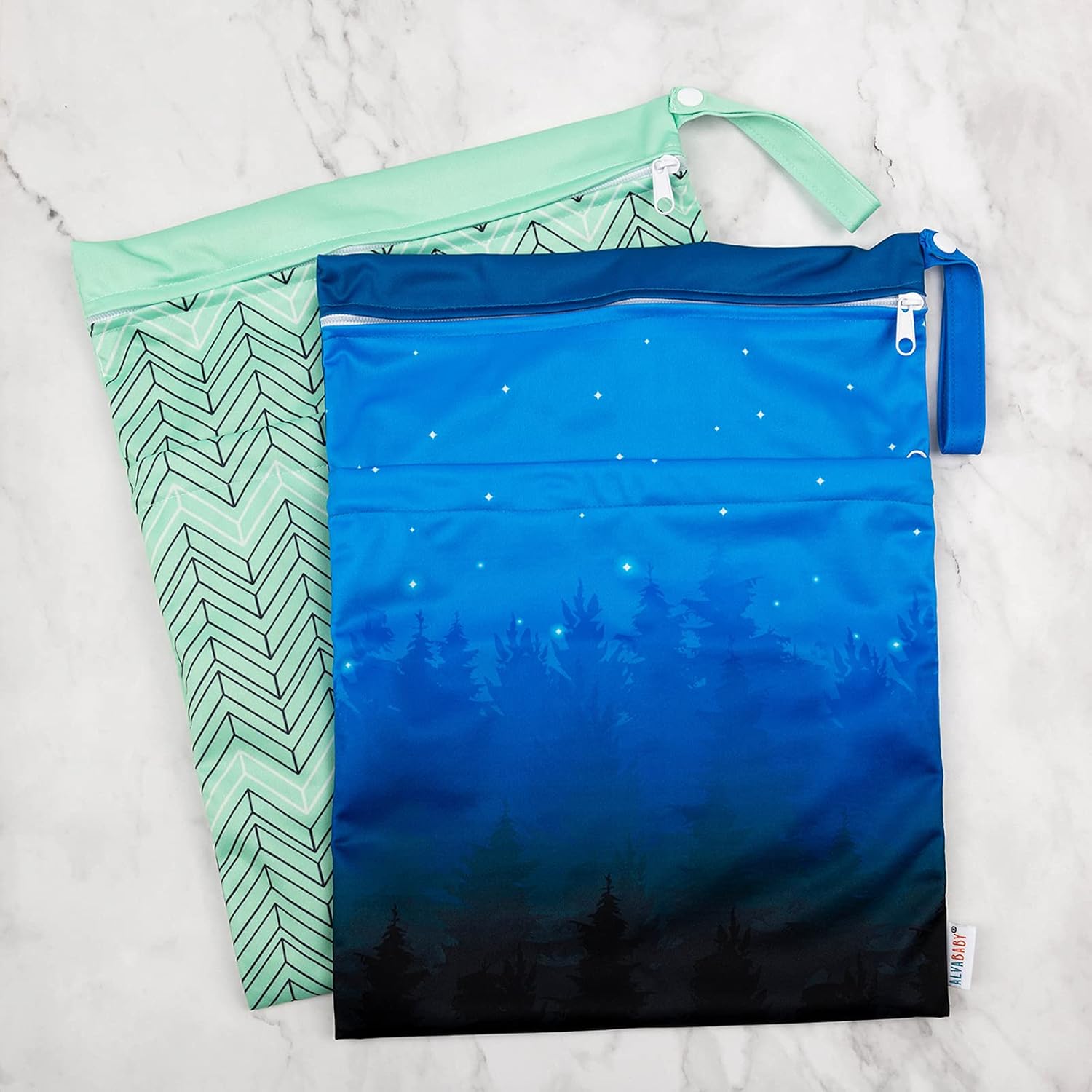 ALVABABY 2pcs Cloth Diaper Wet Dry Bags Waterproof Reusable with Two Zippered Pockets Travel Beach Pool Daycare Soiled Baby Items Yoga Gym Bag for Swimsuits or Wet Clothes LX-AMD0912