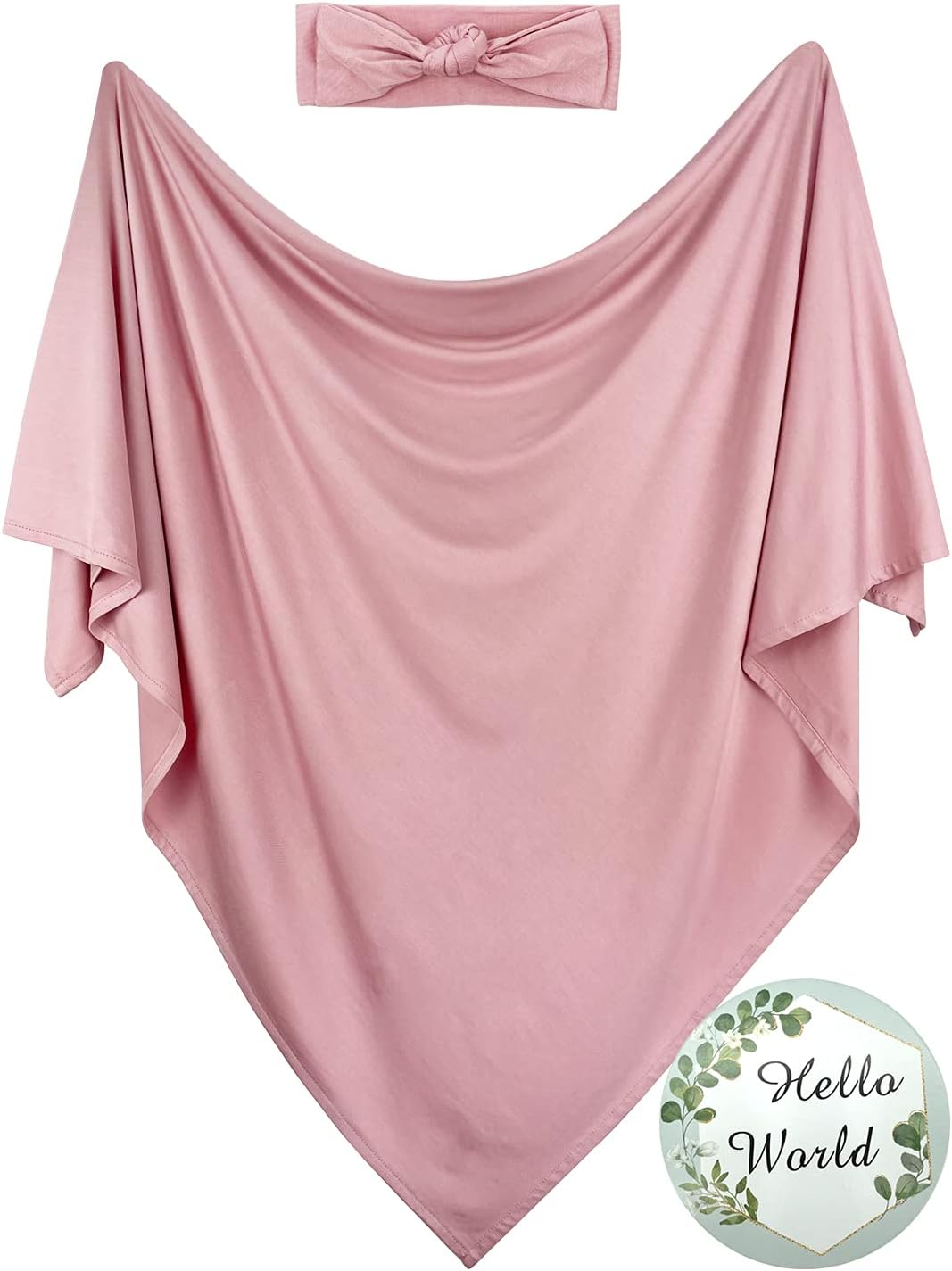 - STYLISH SET:Owlowla newborn swaddle set includes 1 45"x45"swaddle blanket,1 beanie hat or 1 knotted headband and 1 birth announcement card,the blush swaddle blanket set is matching with 1 knotted headband,many of colors are suitable not only for girls but also for boys