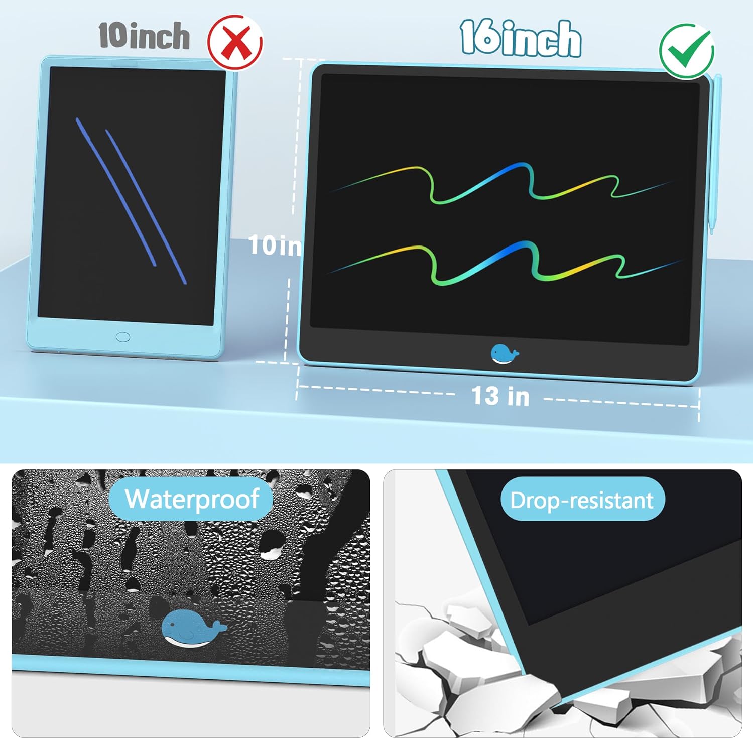 Hockvill LCD Writing Tablet for Kids 16 Inch, Toys for Girls Boys Drawing Pad for 3 4 5 6 7 8 Year Old Kid, Toddler Magnetic Doodle Board Travel Essentials Christmas Birthday for Children (Blue)