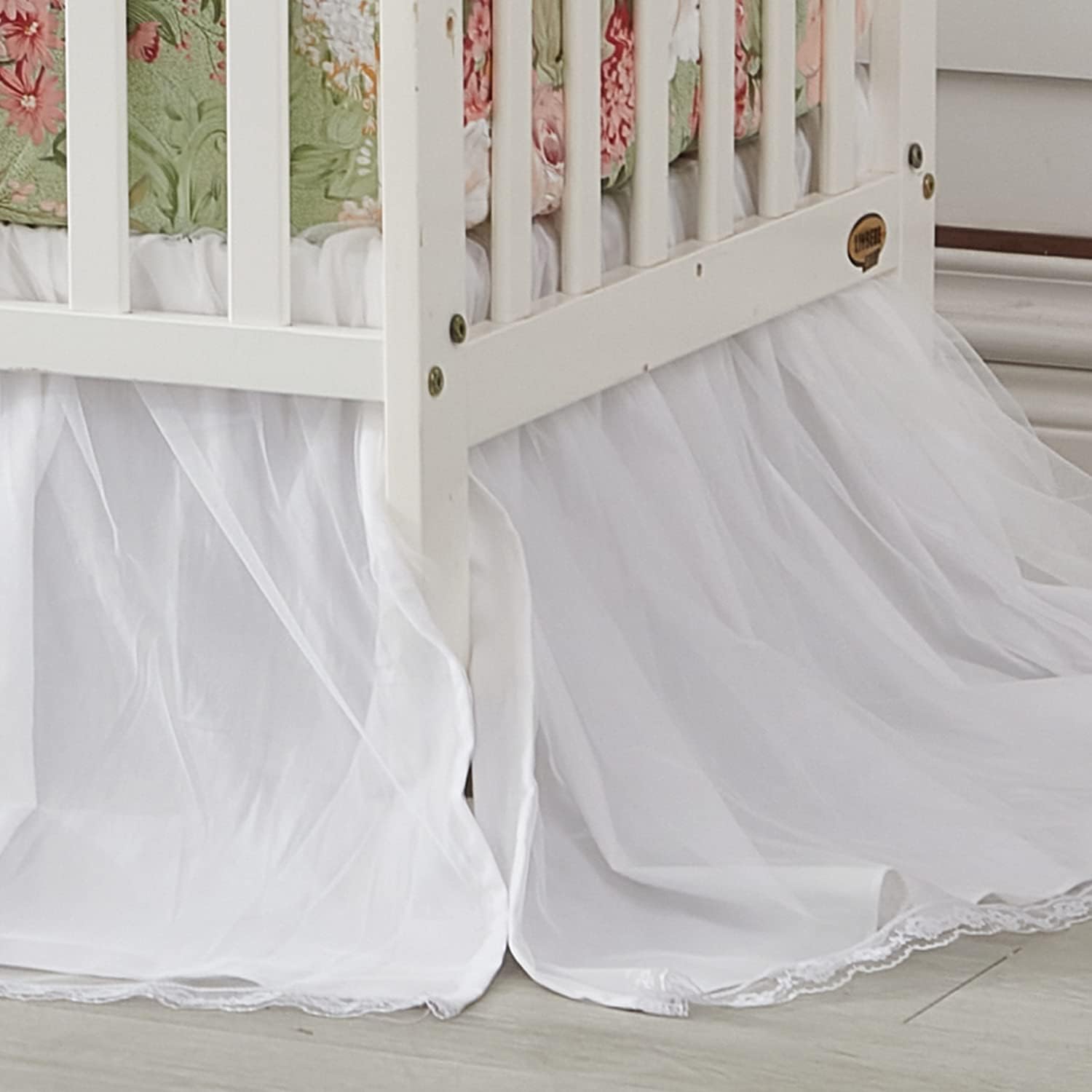 - ăMAGICALăCrib Bed Skirt: our white ballerina crib skirt is double layered with solid cotton and white tulle point d'esprit lace overlay, fits around the entire crib and is tailored with split corners for easy placement around posts. SHIMMER and SPARKLY