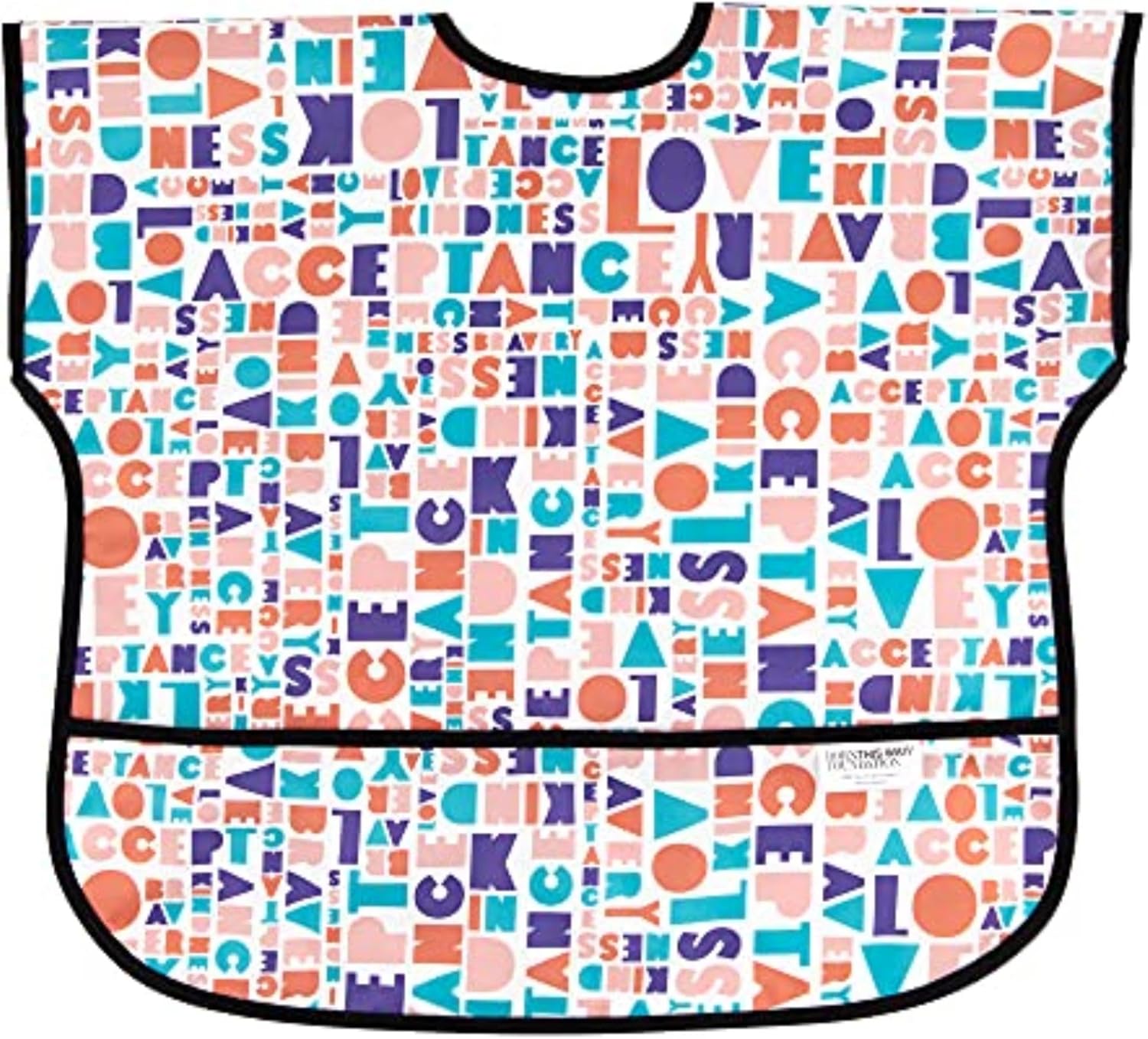 - ESSENTIAL FOR TODDLERS AND KIDS – Fits boys and girls ages 1-3 years; mess-proof – created for keeping them clean, the short-sleeve Junior Bib with back hook and loop closure allows for a quick, adjustable and tug-proof fit; approximately 15in across, 14in from neck down and 16in sleeve to sleeve