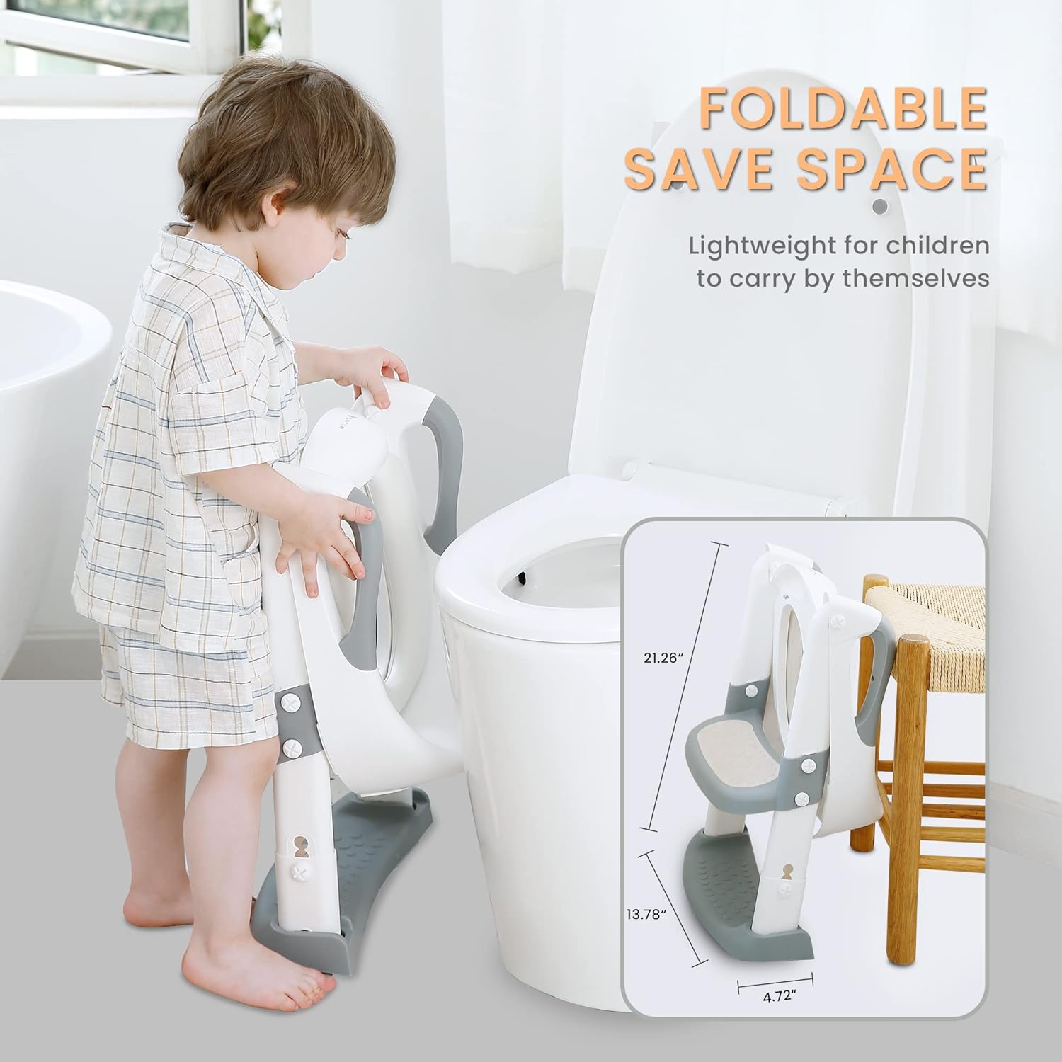 - 【EASILY FOLDS & STORAGE】 - The foldable design makes this potty training toilet occupy only a small space, and the light weight of our potty seat is only 1.2kg. Infants and young children can place or fold by themselves without the company of an adult. Give priority to training children to go to the toilet.