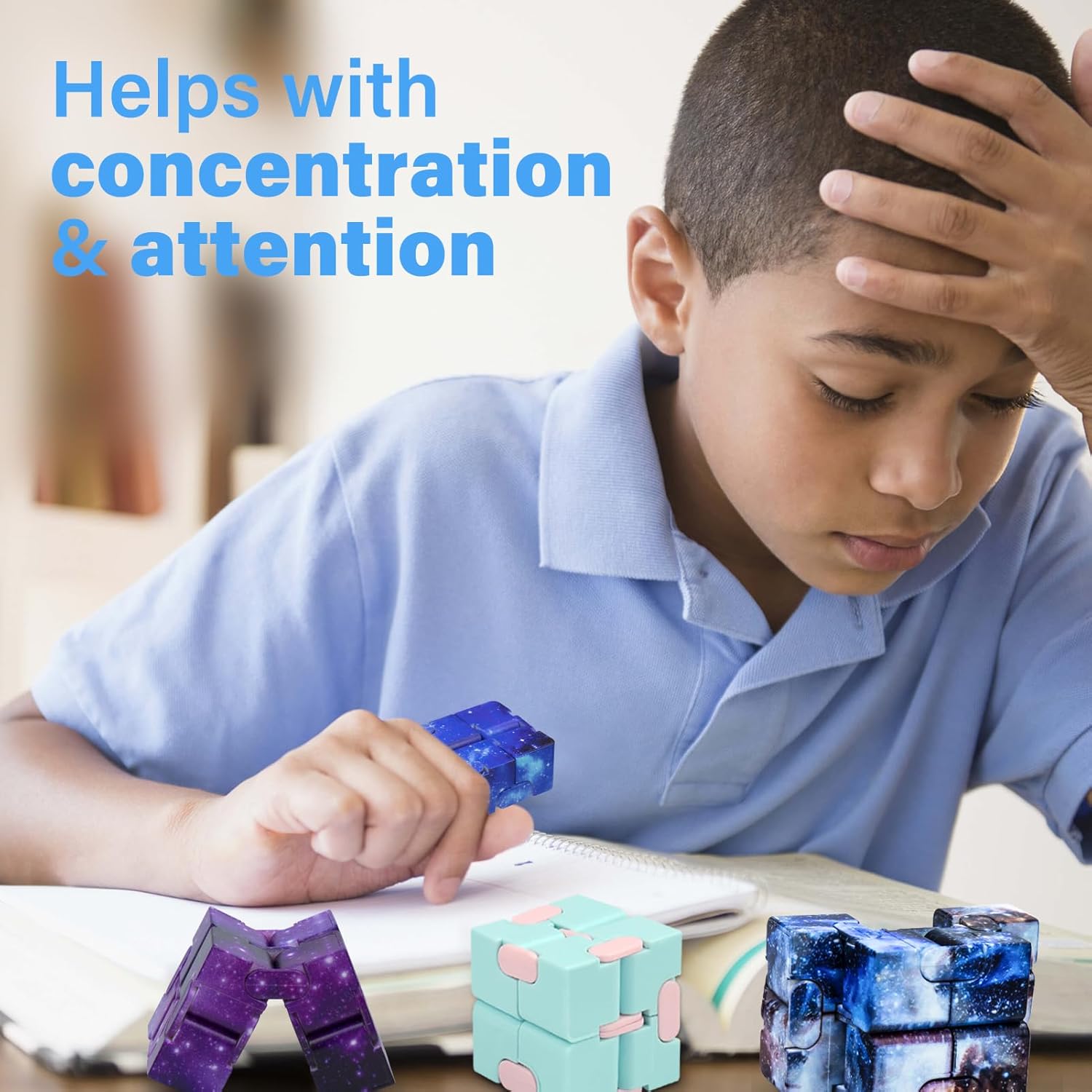 Infinitycube Fidget Toy Stress Relieving Fidgeting Game for Kids and Adults,Cute Pocket-sized Unique Gadget for Anxiety Relief and Kill Time (4, Galaxy & Macaron Blue)
