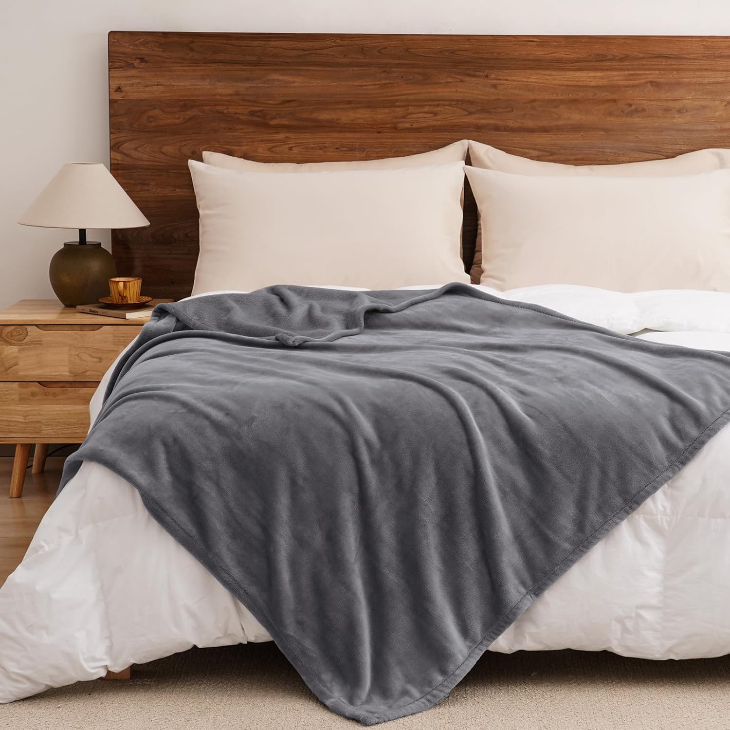 PHF Ultra Soft Fleece Throw Blanket, No Shed No Pilling Luxury Plush Cozy 300GSM Lightweight Blanket for Bed, Couch, Chair, Sofa Suitable for All Season, 50" x 60", Grey