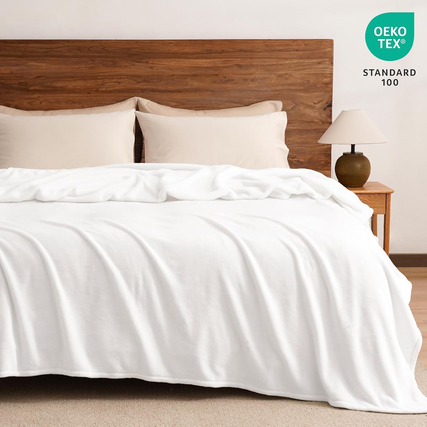 PHF Ultra Soft Fleece Blanket Queen Size, No Shed No Pilling Luxury Plush Cozy 300GSM Lightweight Blanket for Bed, Couch, Chair, Sofa Suitable for All Season, 90" x 90", White
