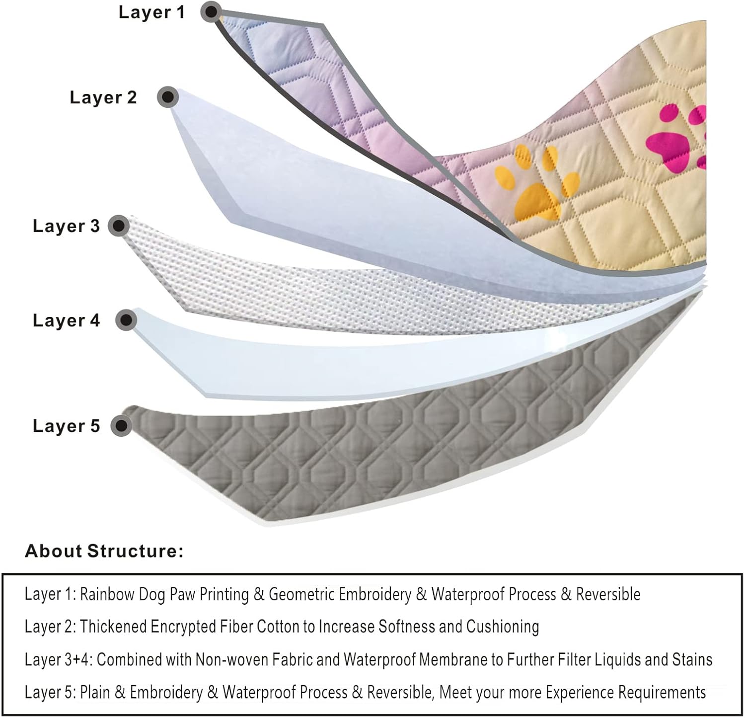 100% Waterproof Dog Bed Cover 52x82 inch Reversible Changing Pad Reusable Camping Mat for Kids/Pet/Dog/Cat Washable Geometric Embroidery Blanket Patchwork Rainbow Dog Paw Printed+Gray