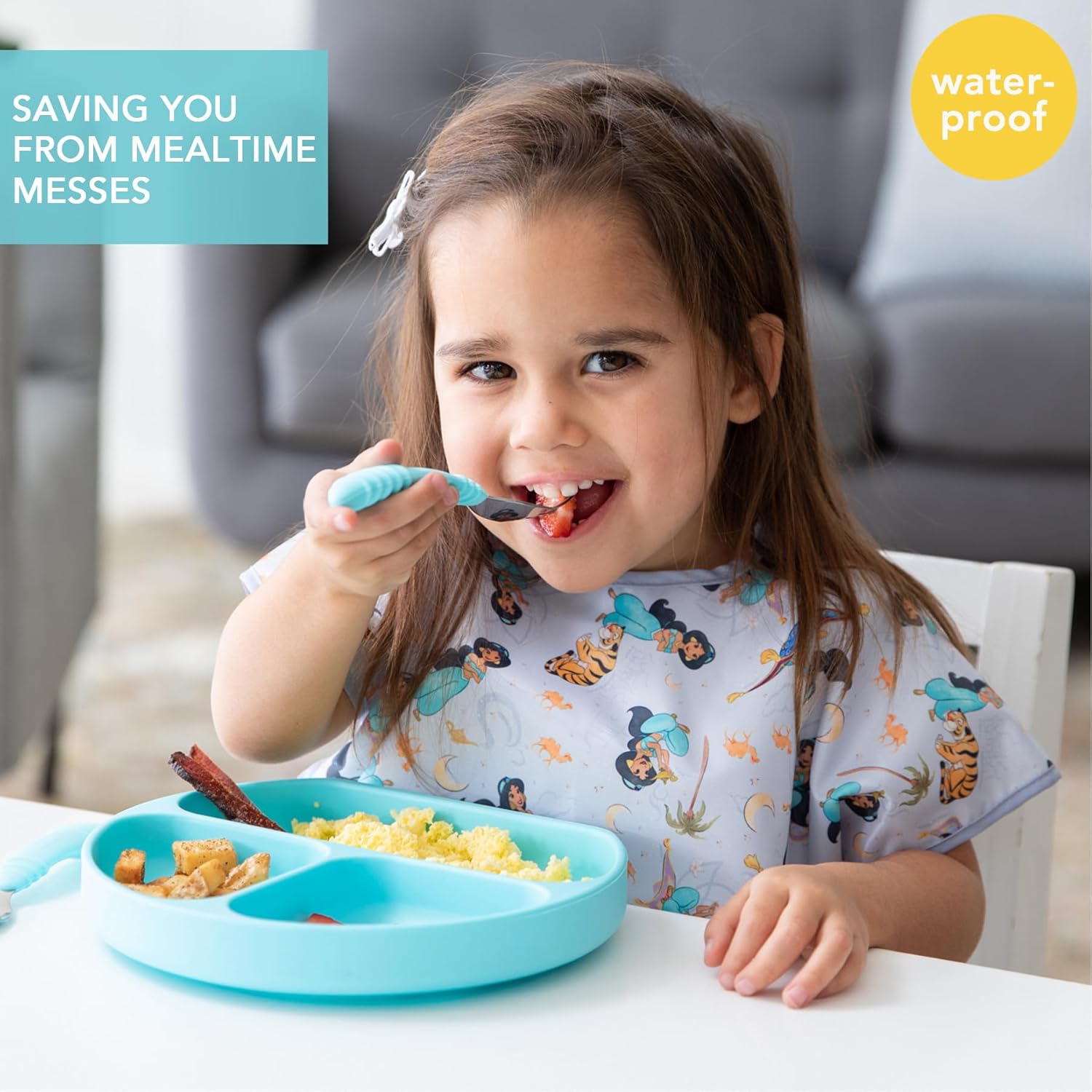 • SOFT YET STRONG – Bumkins signature waterproof fabric is durable and stands up to messes, yet it’s lightweight and comfortable for your little one; wash and reuse over and over again