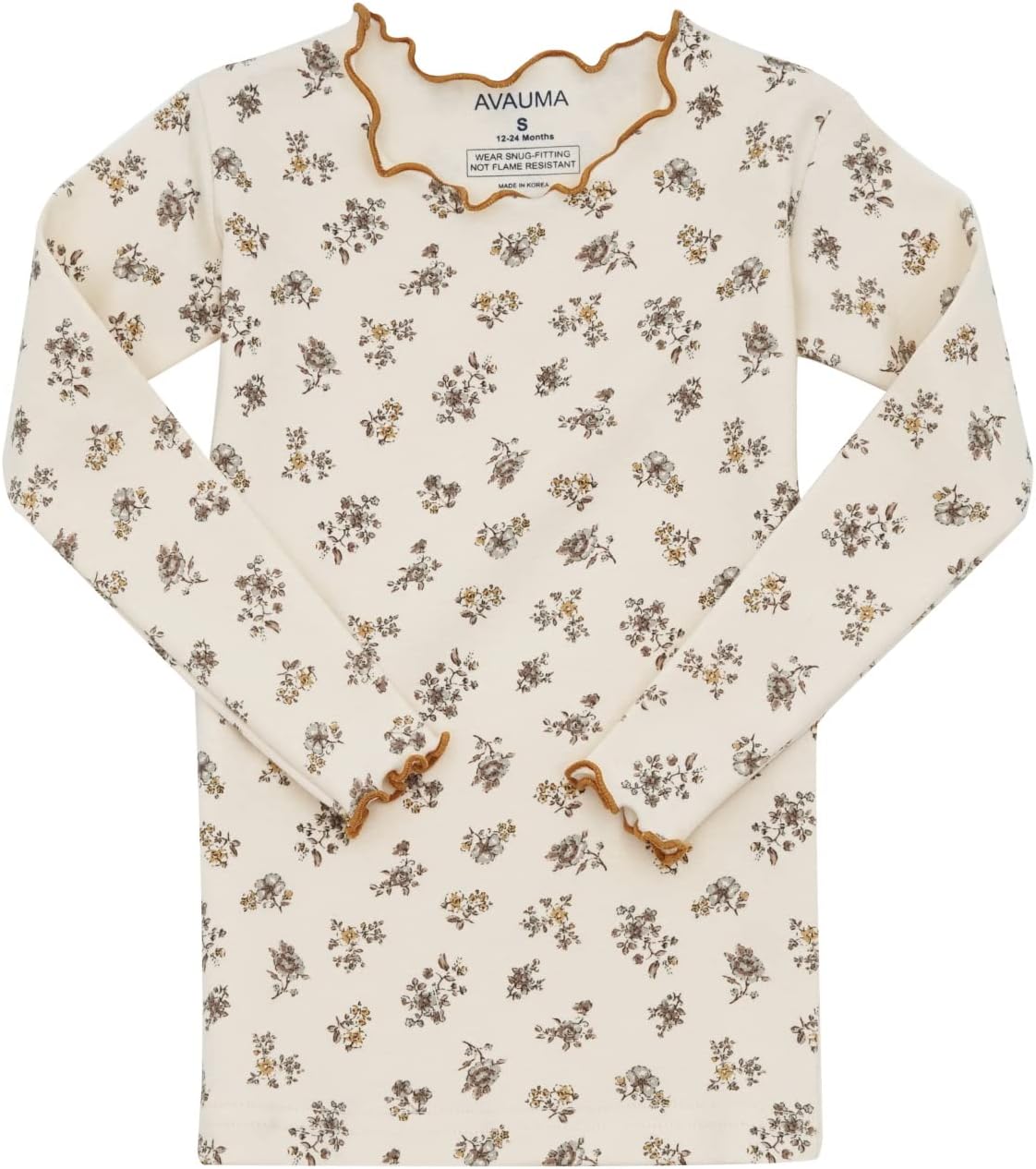 AVAUMA Baby Boy Girl Pajama Set 6M-7T Kids Cute Toddler Snug fit Flower Pattern Design Pjs Cotton Sleepwear Ruffled Shirring