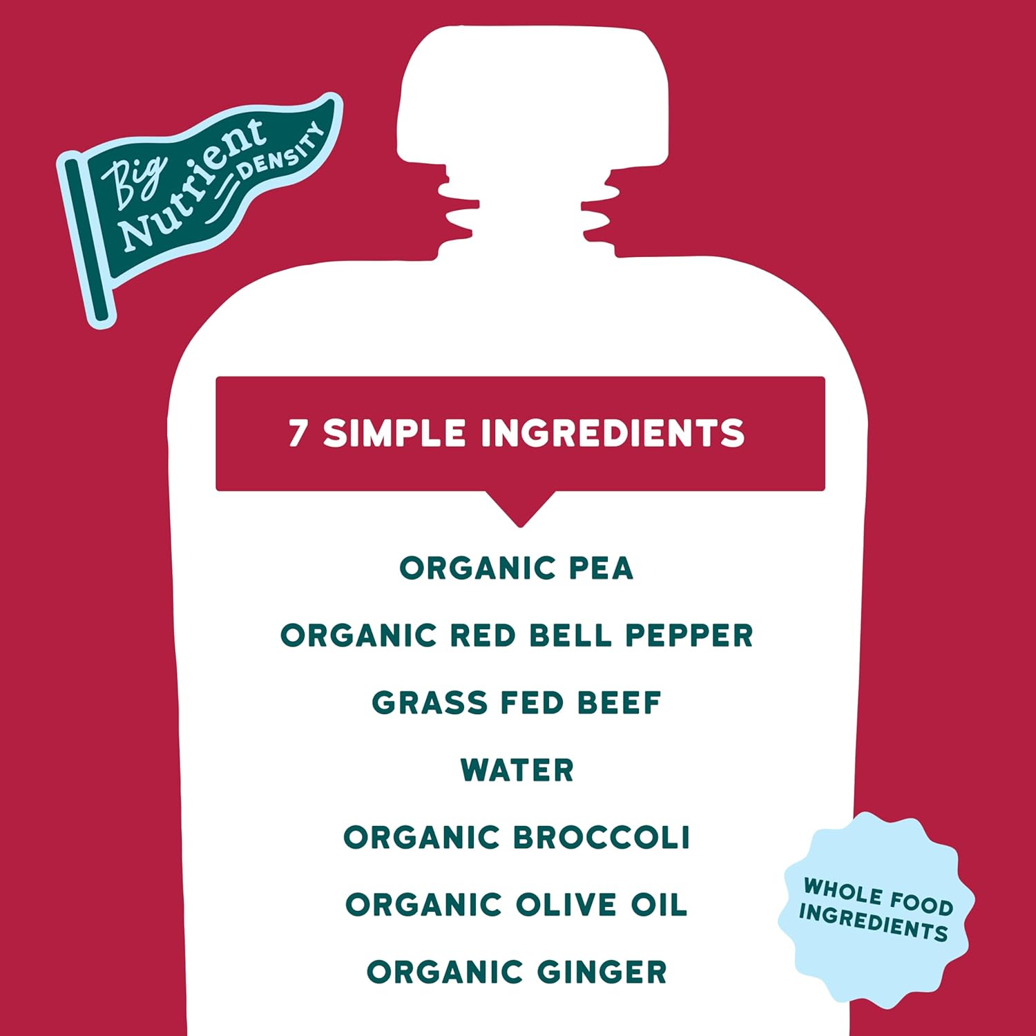 Serenity Kids 6+ Months Beef & Ginger Baby Food Puree Pouches - Grass Fed Beef & Organic Peas, Bell Pepper & Broccoli - No Added Sugar & BPA-Free Pouches - 3.5 Oz, 6 Pack