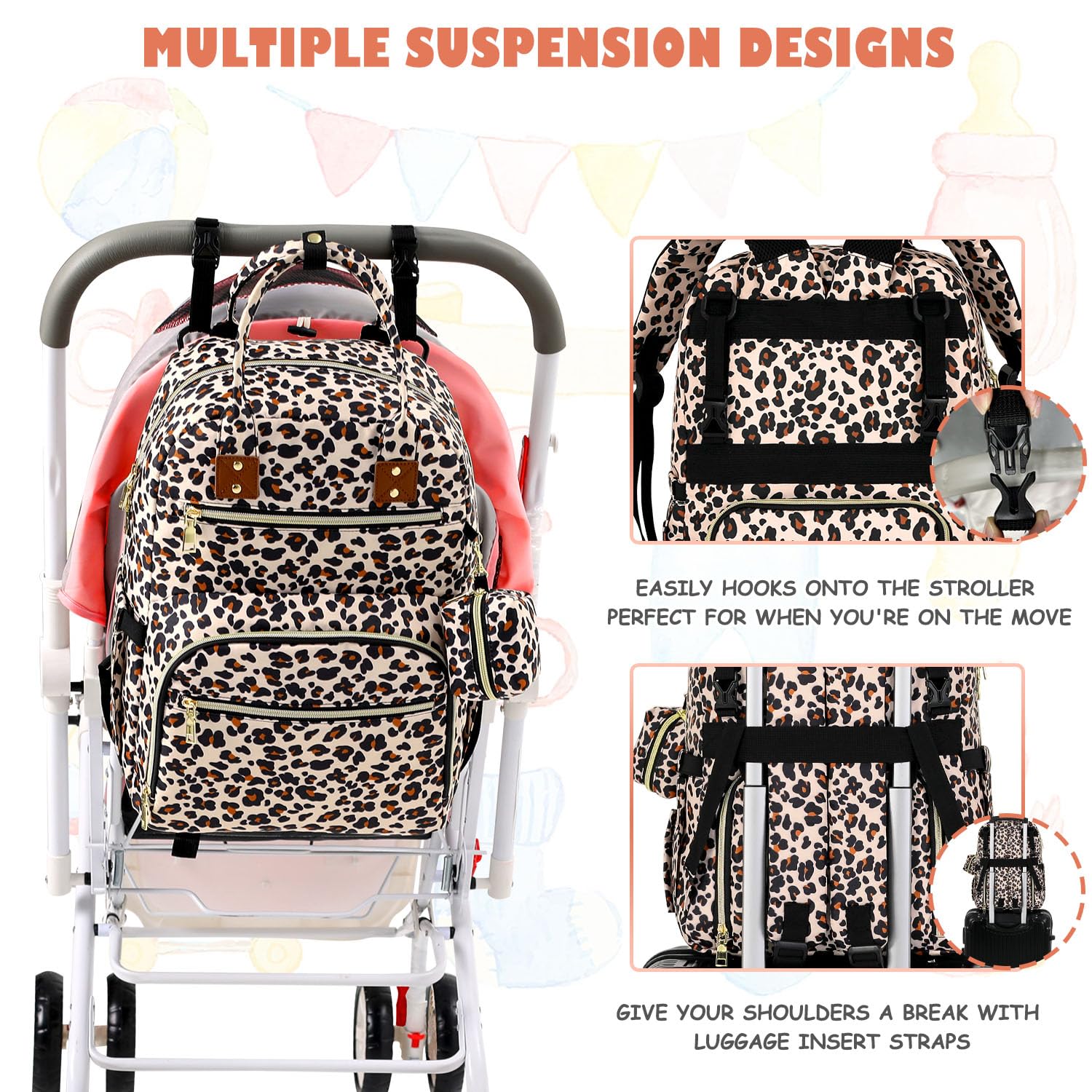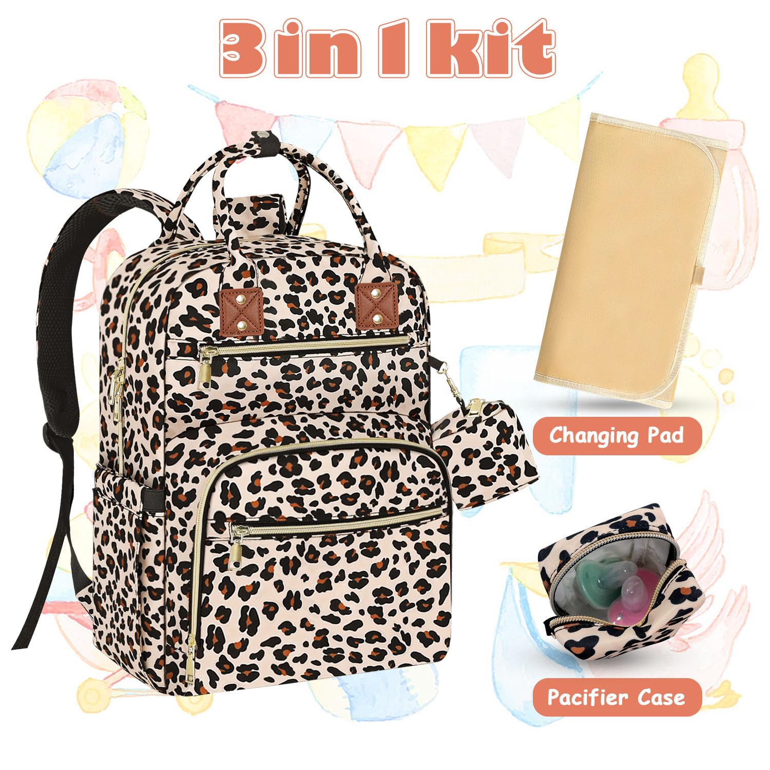 Baby Diaper Bag Backpack Travel Diaper Bags for Baby Girl Boy Large Capacity Baby Bag Backpack for Women Leopard Print