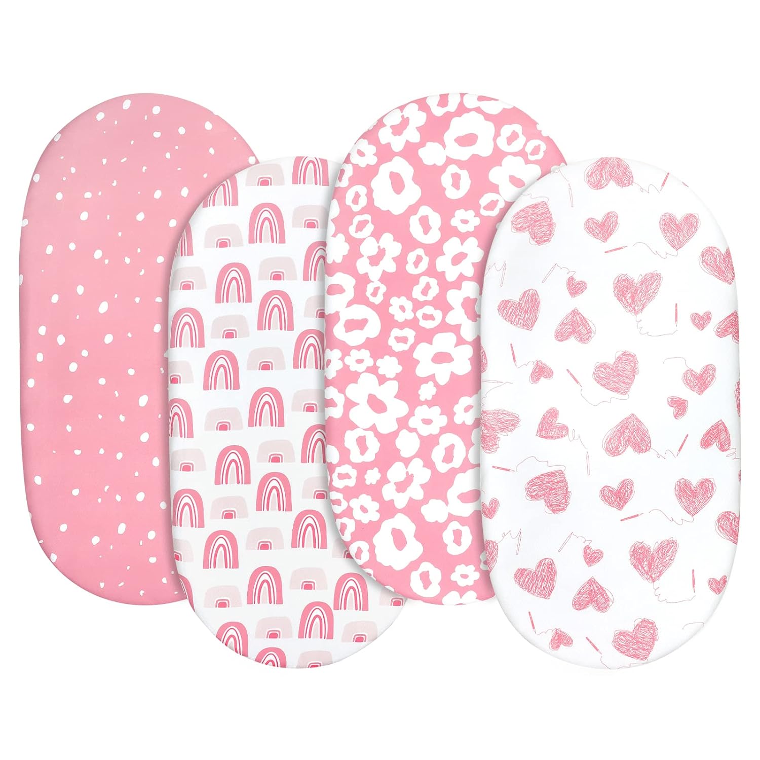 Gllquen Baby Bassinet Sheets 4 Pack, Breathable Cozy Fitted Mattress Sheet, Elastic Travel Crib Fashionable Floral Pattern, Standard Cradle Safe Sheets for Baby Boys Girls 32"x16"(Love)