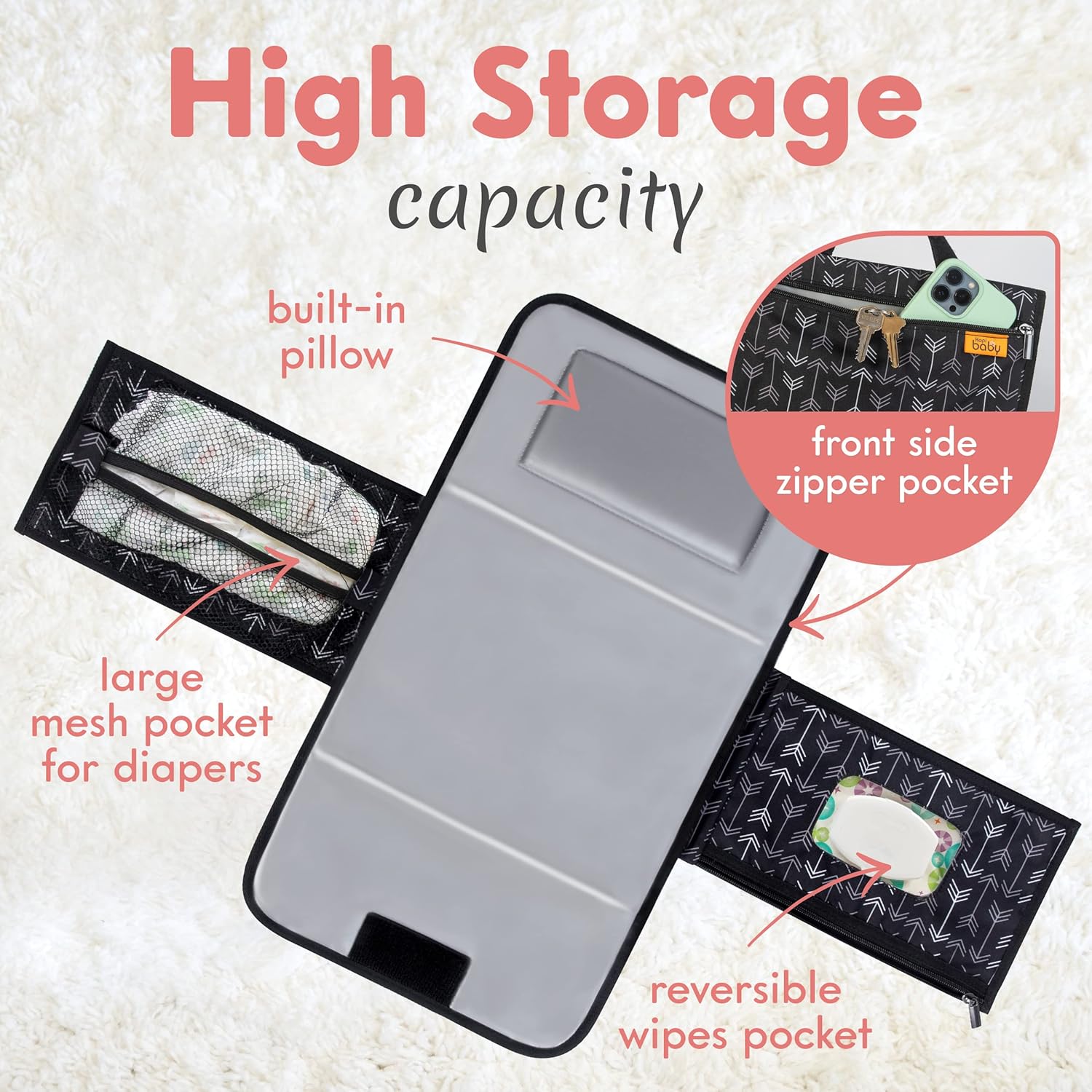 Kopi Baby Portable Diaper Changing Pad - Baby Changing Pad & Diaper Changer Travel Bag, Smart Design Baby Changing Mat, Portable Changing Pad for Baby, Baby Changing Station, Infant Gift - Black Arrow