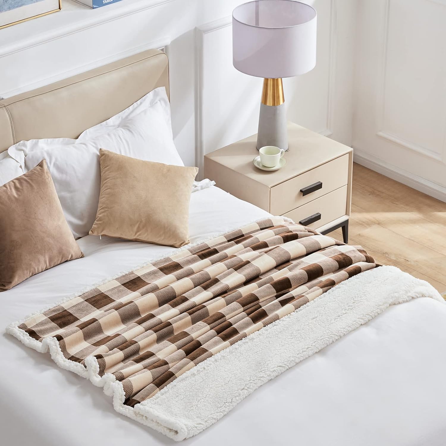 Touchat Sherpa Buffalo Plaid Christmas Twin Blanket 60" X 70", Fuzzy Fluffy Soft Cozy Throw Blanket, Fleece Flannel Plush Microfiber Blanket for Couch Bed Sofa(Brown)