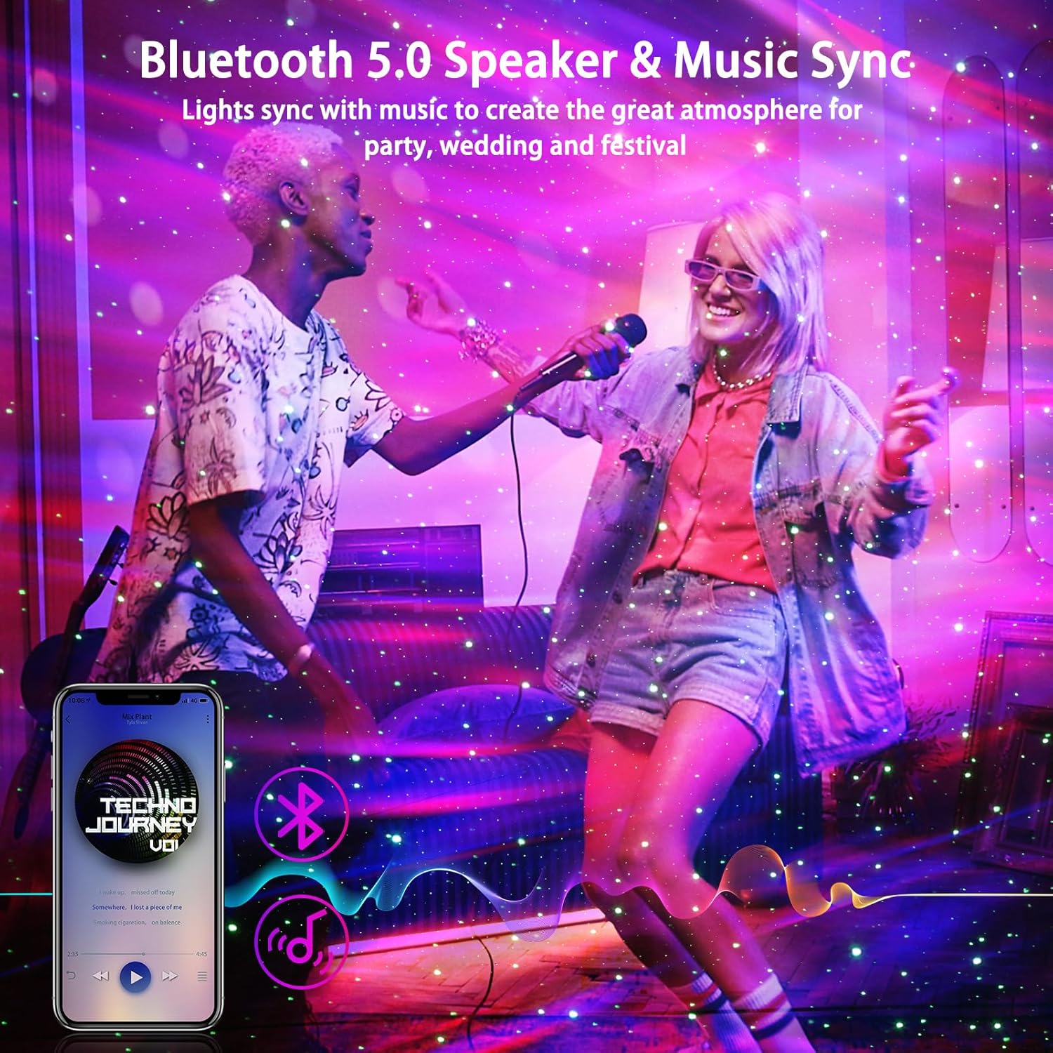 - 【Sound Activated & 1/2/4 Hour Auto Off】Allowing the lights projection sync with the music beat, creating a disco effect which is perfect for the party (Make sure the Bluetooth pairing is completed first). Auto off function allows you to set 1 or 2 hours automatically turn off to help you realize energy saving when you sleep, but the night light projector will also turn off after 4 hours(default setting that you can't cancel)without using the timer function.