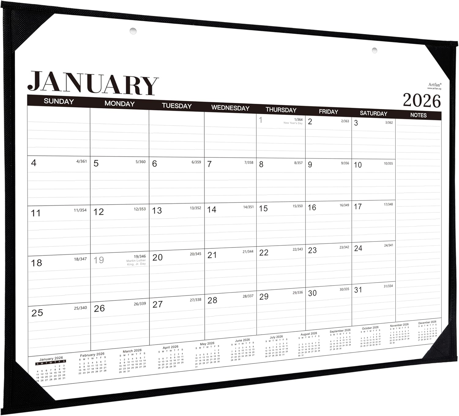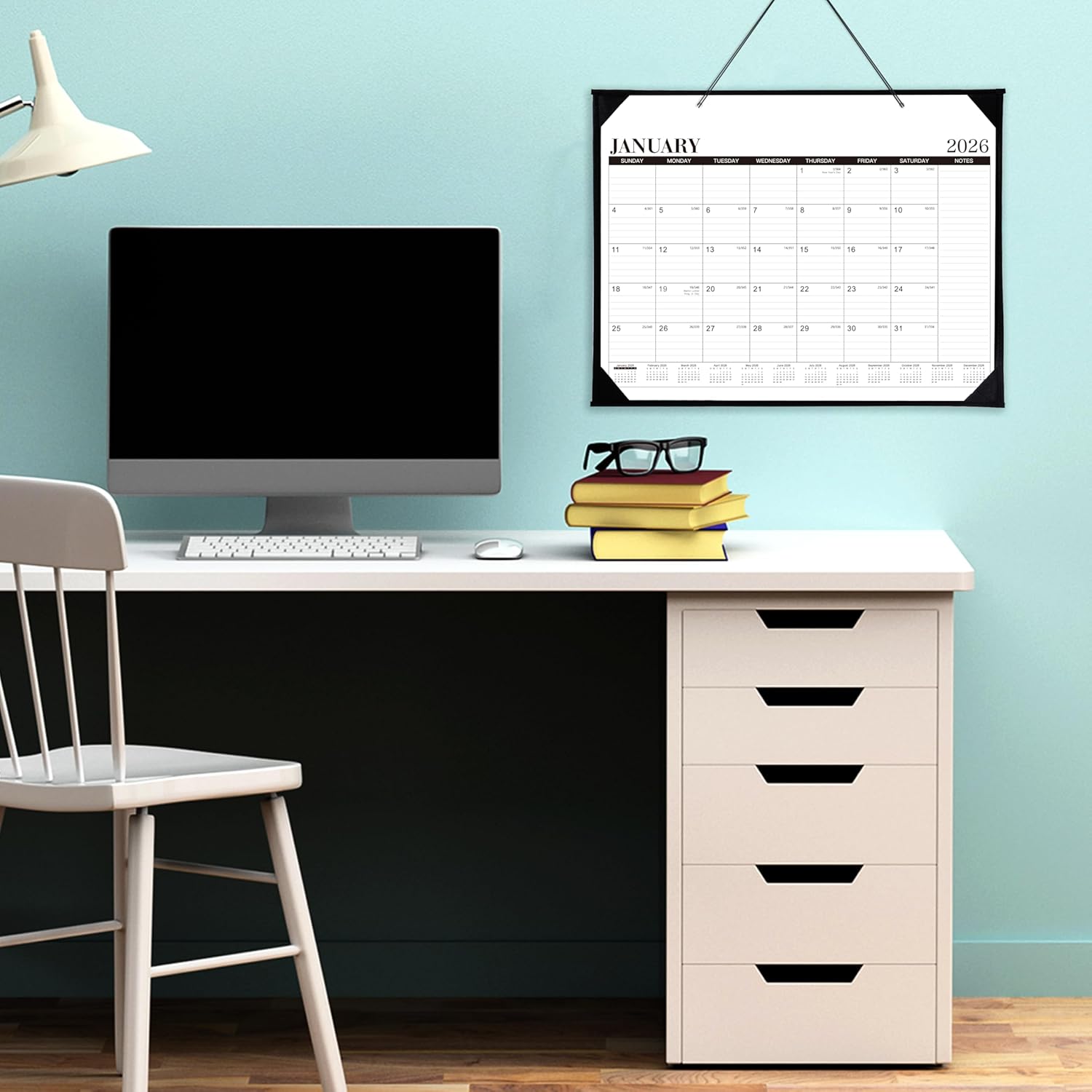 - 📆 2-IN-1 FEATURES OF THIS 2026 CALENDAR - 2 clear corner protectors and hanging holes make it a good for wall hanging. It also works as a desk calendar or desk pad, a great tool for long term planning. Clear corners keep pages flat on desk or wall.