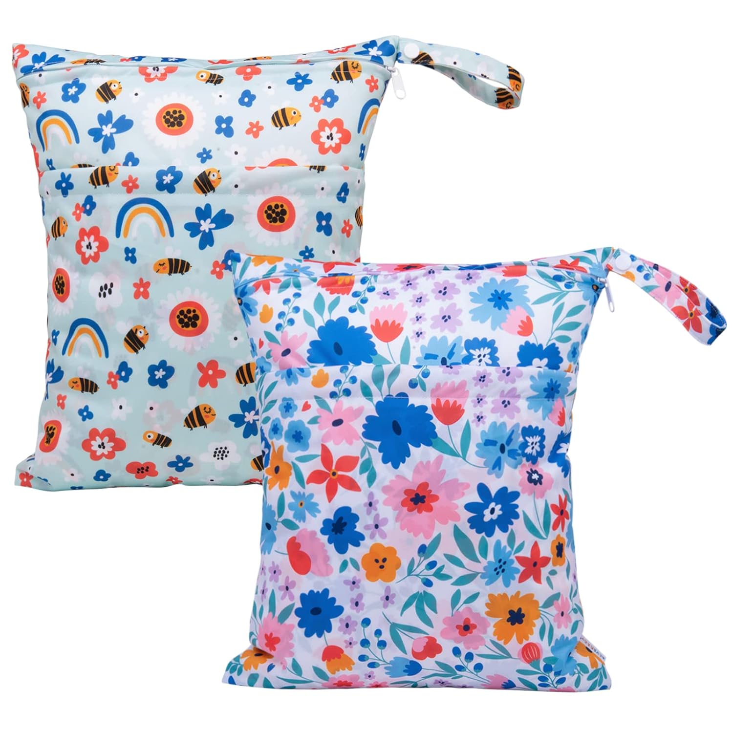 ALVABABY 2pcs Cloth Diaper Wet Dry Bags Waterproof Reusable with Two Zippered Pockets Travel Beach Pool Daycare Soiled Baby Items Yoga Gym Bag for Swimsuits or Wet Clothes LX-YX8688