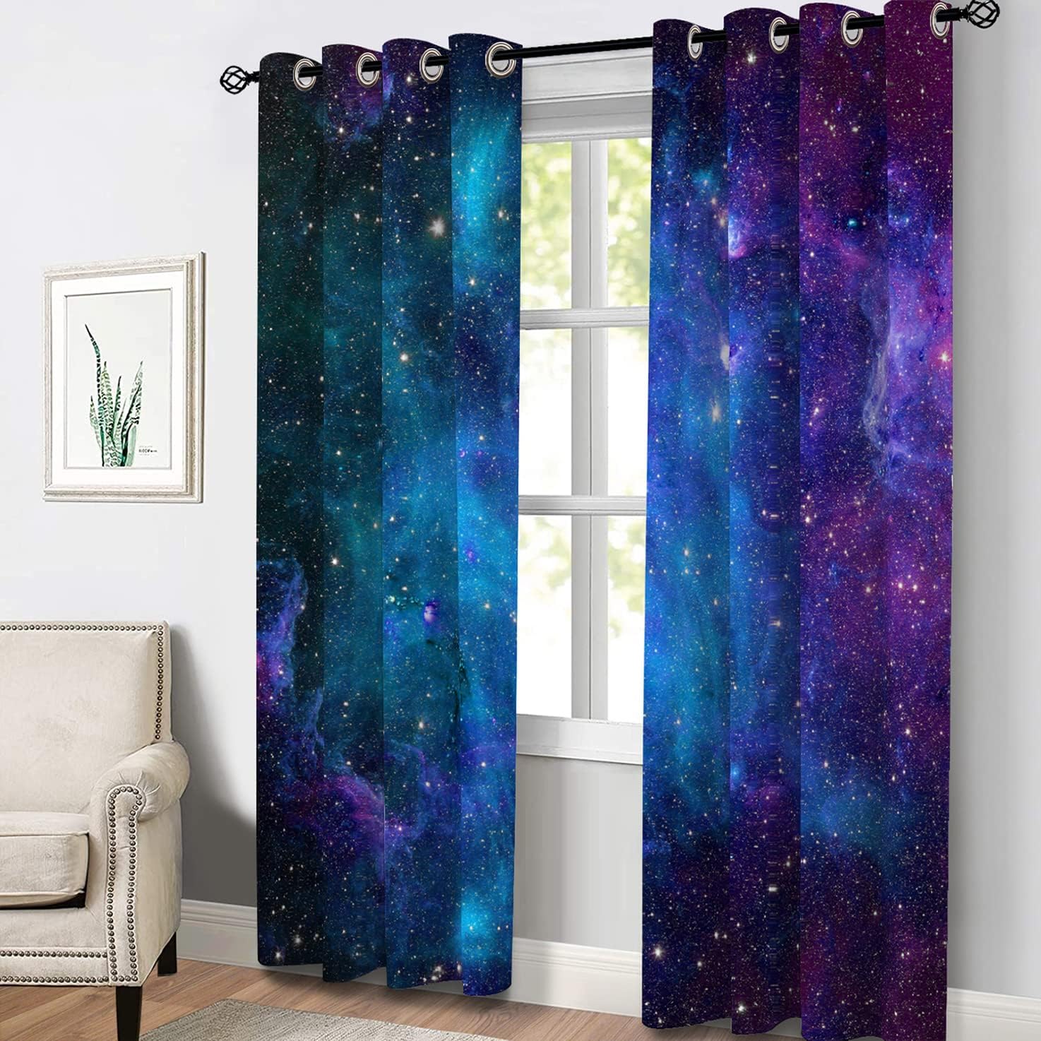 Aimego Galaxy Blackout Curtains Outer Space Universe Nebula Night Starry Window Drapes Decor for Kids Boys Teens Bedroom Living Room Grommet Room Darkening Curtains 2 Panel Set, 42"X54"