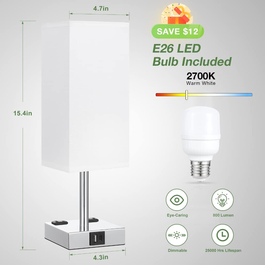- 2 Energy Efficient LED Bulbs Included - This nightstand lamps set of 2 packed with dual dimmable E26 LED bulbs. NO FLICKER, NO DAZZLE. Equiped with the stylish linen fabric lampshade, these two 3000K warm bulbs can help bring a warmer ambience to our decor lamp which is good for eye-caring.ļ¼Note:This table lamp is most compatible with the bulbs we deliver, we do not recommend using other bulbs.ļ¼