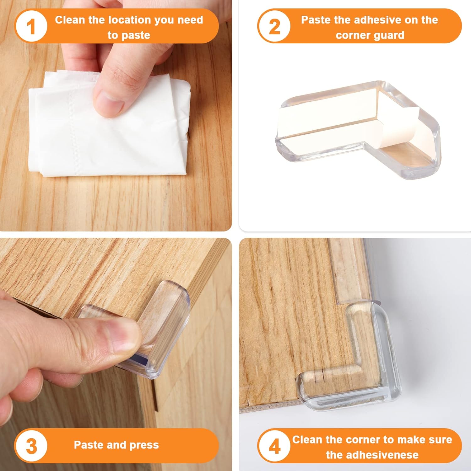 - đłăWidely UseăOur baby proofing corner guards is not a fixed angle, you can adjust it to any angle to meet your needs. It can be well pasted on a Wood, Glass, Metal, Marble, PVC, Tiles, Stone, Cement and so on