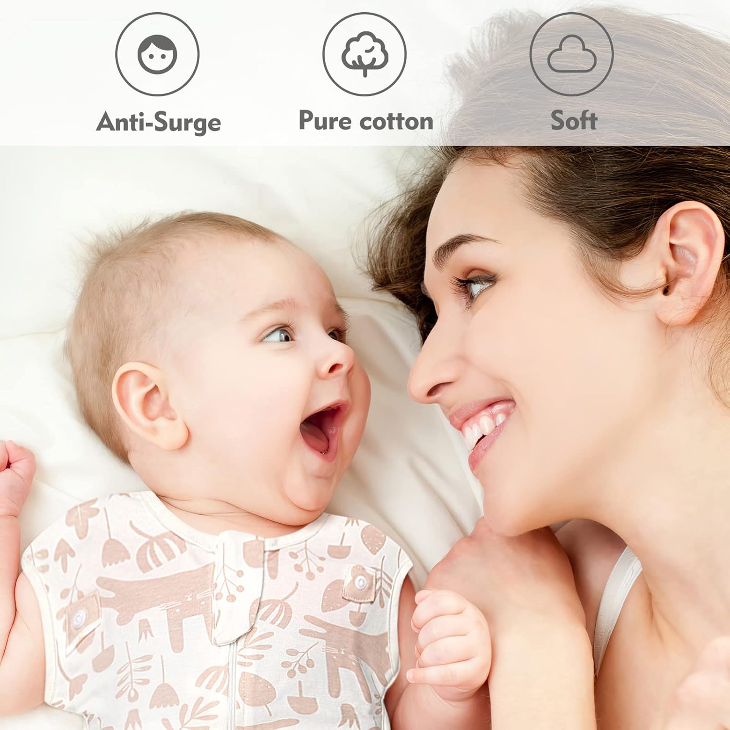 - Variey of Styles: Baby Transition Swaddle Sleep Sack, Swaddle Transition Bag comes in 5 styles, 3 sizes, 100% cotton, 0.5 TOG, suitable for baby from 0-9 months. Since it is made of pure cotton, there is a 0.5-1 inch size deviation after washing