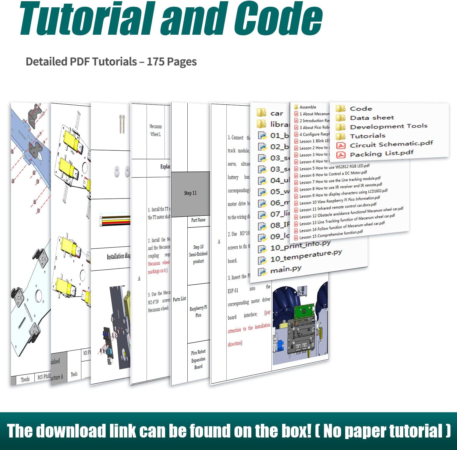 - 【Learn Programming & Robotics】This Omni-directional Mecanum Wheels Robotic Car Kit is designed for teens to learn to coding, building and programming. It is developed based on the RPi Pico, using MicroPython as the programming language, the code is easy to read and easy to modify, it is the best choice for learning programming and robotics.